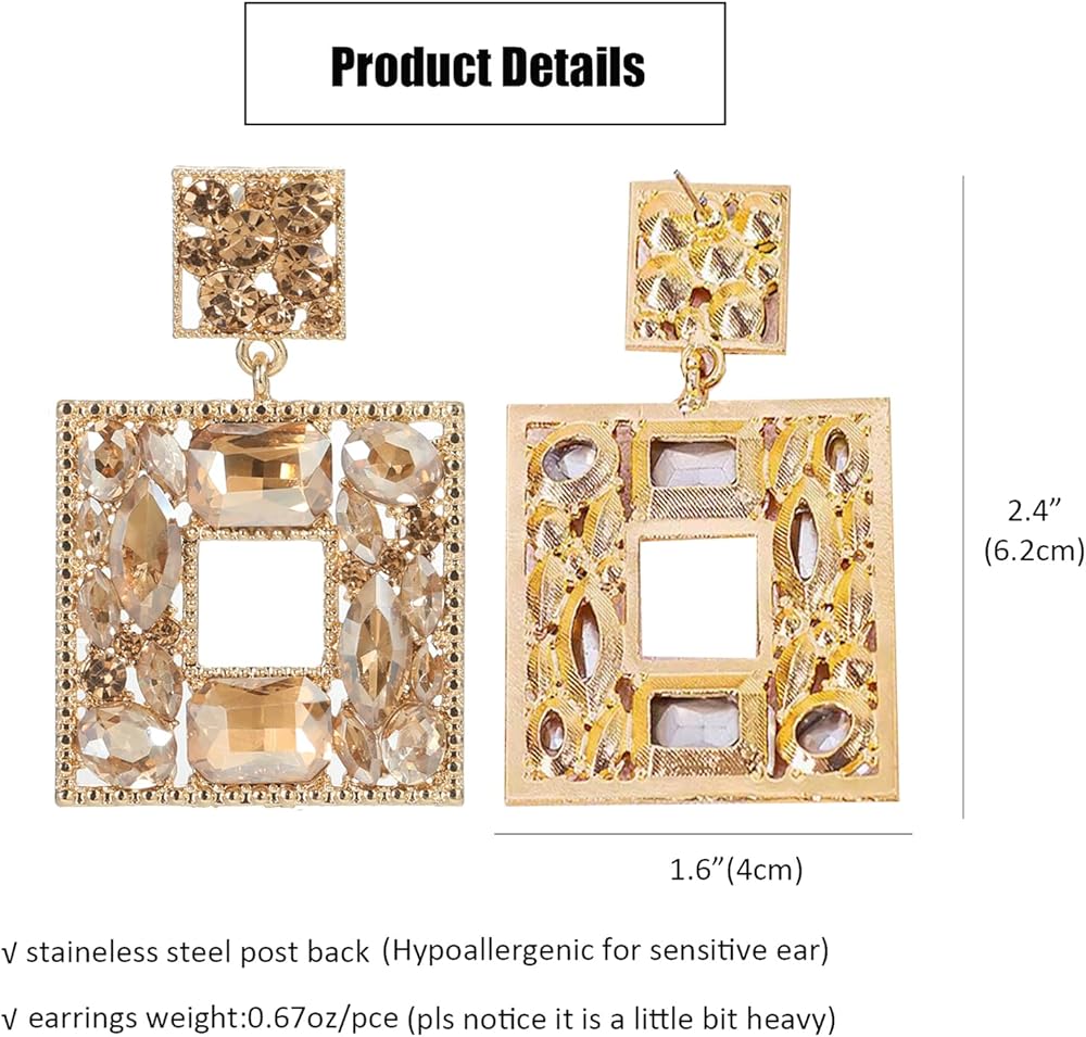 تصميم فريد - تتميز الأقراط الرائعة المصنوعة من حجر الراين بتصميم مقصوص وكريستالات بأحجام مختلفة للحصول على مظهر ليلي متألق. ستكون الأقراط الرقيقة إضافة مثالية للزي اليومي أو فستان السهرة. تجعلك براقة وأنيقة وساحرة.