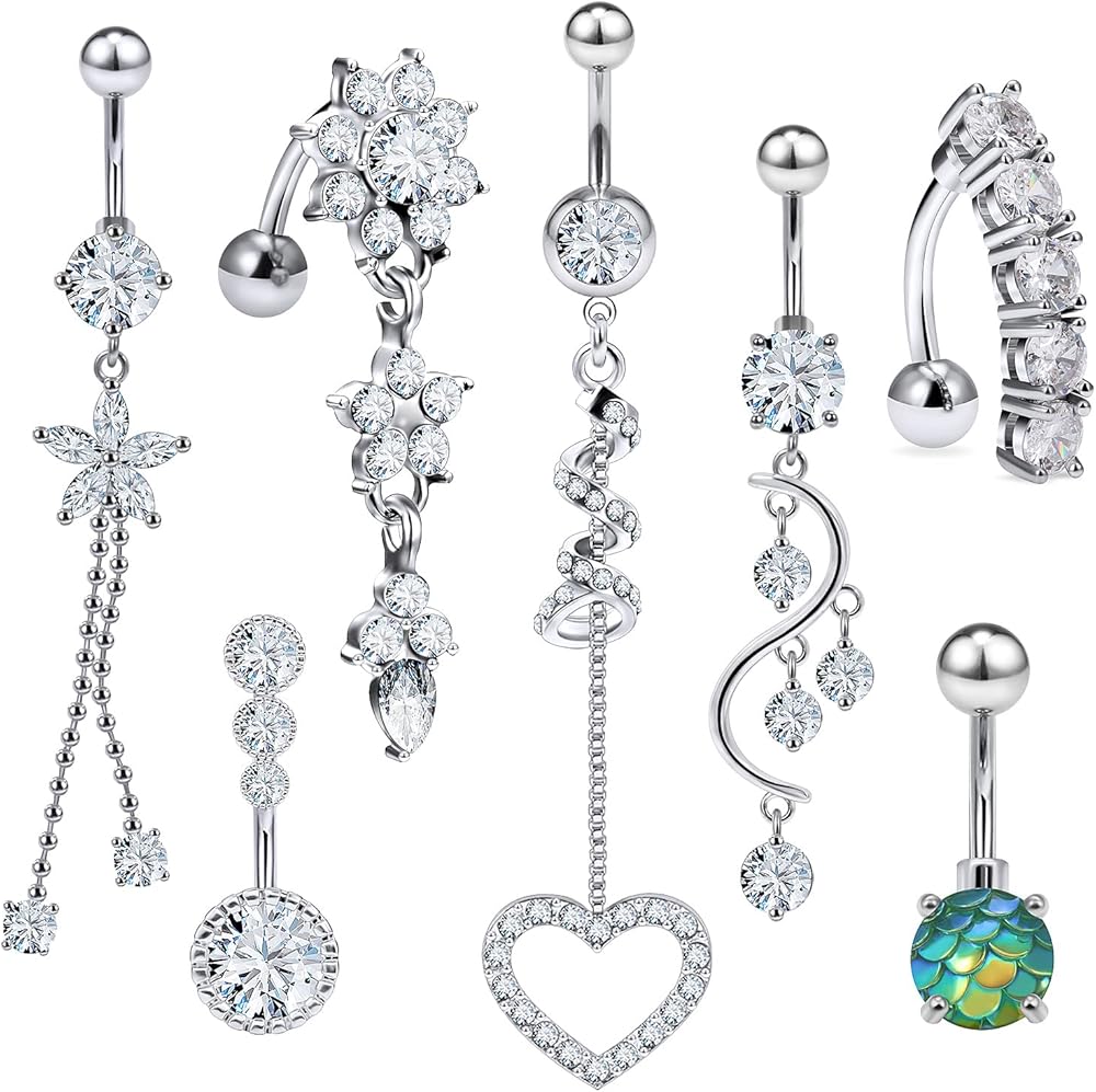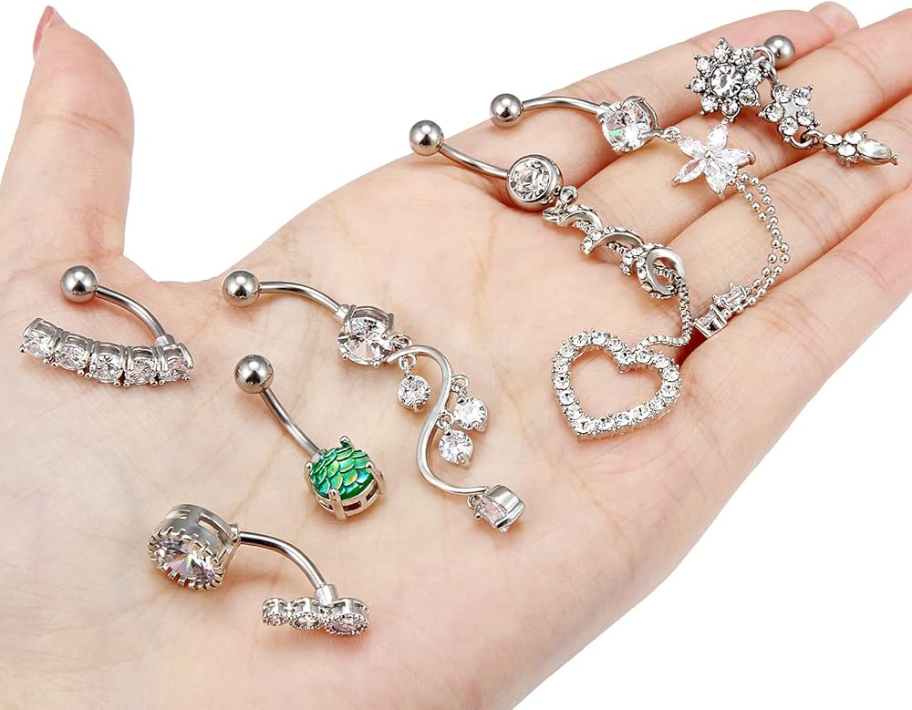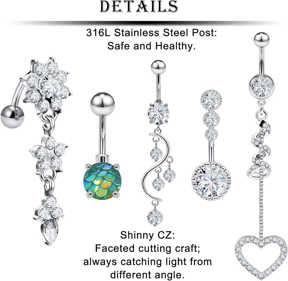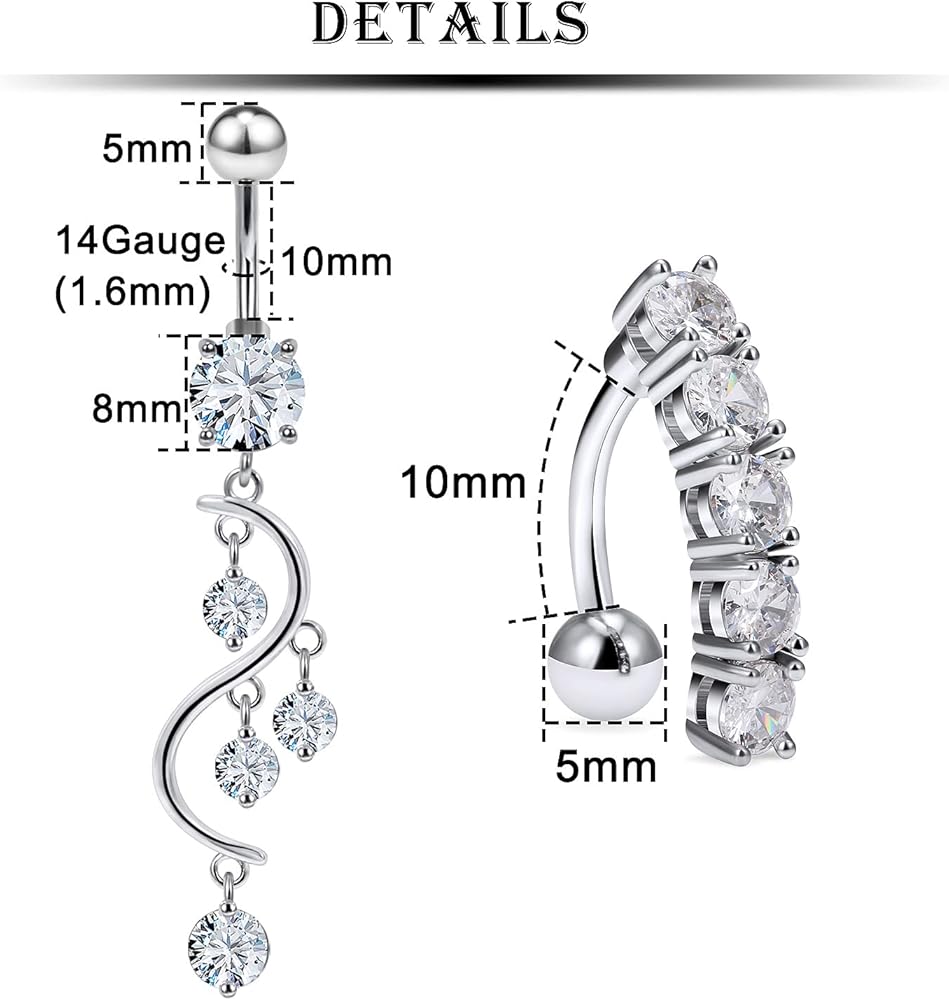 Kridzisw Belly Button Rings Surgical Stainless Steel 14G CZ Navel Belly Ring 10mm Piercing Barbell Body Jewelry Silver