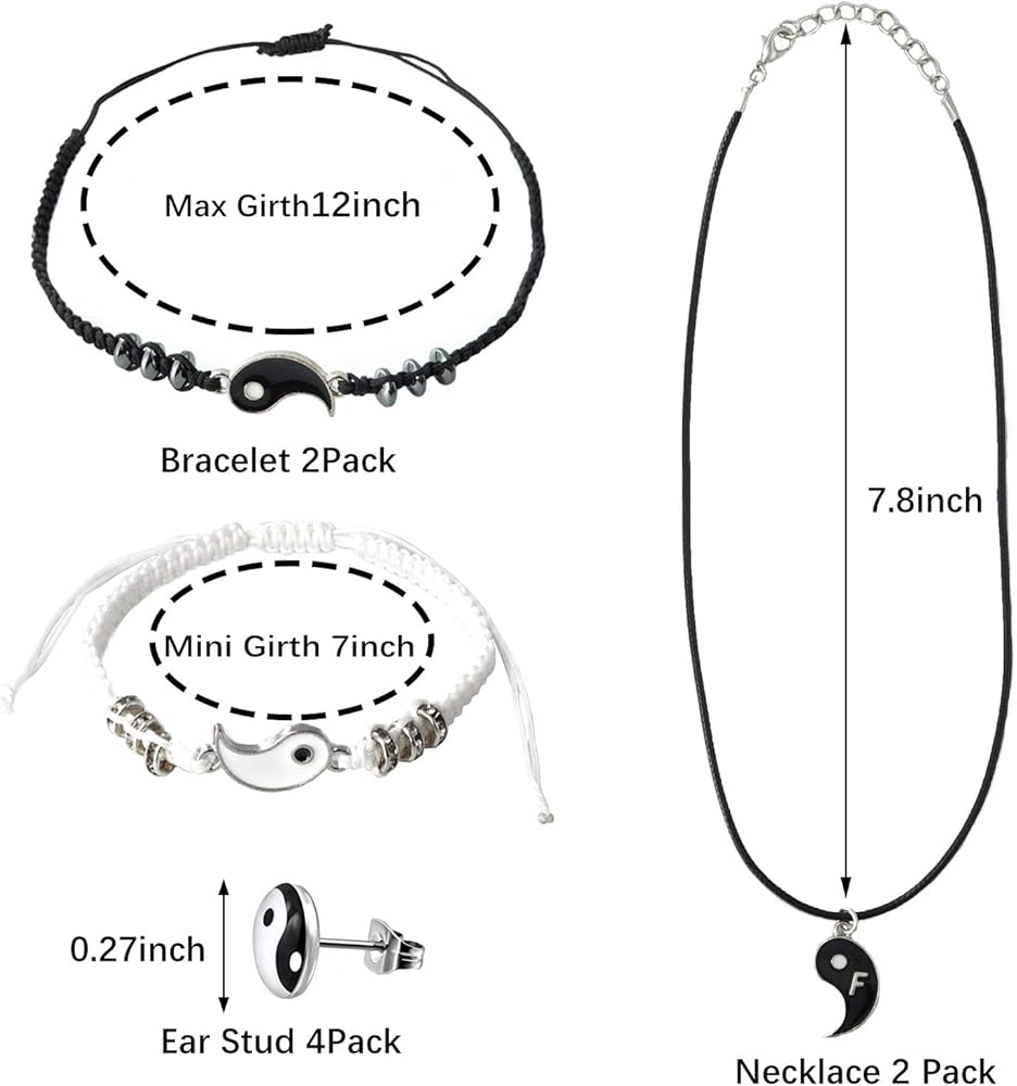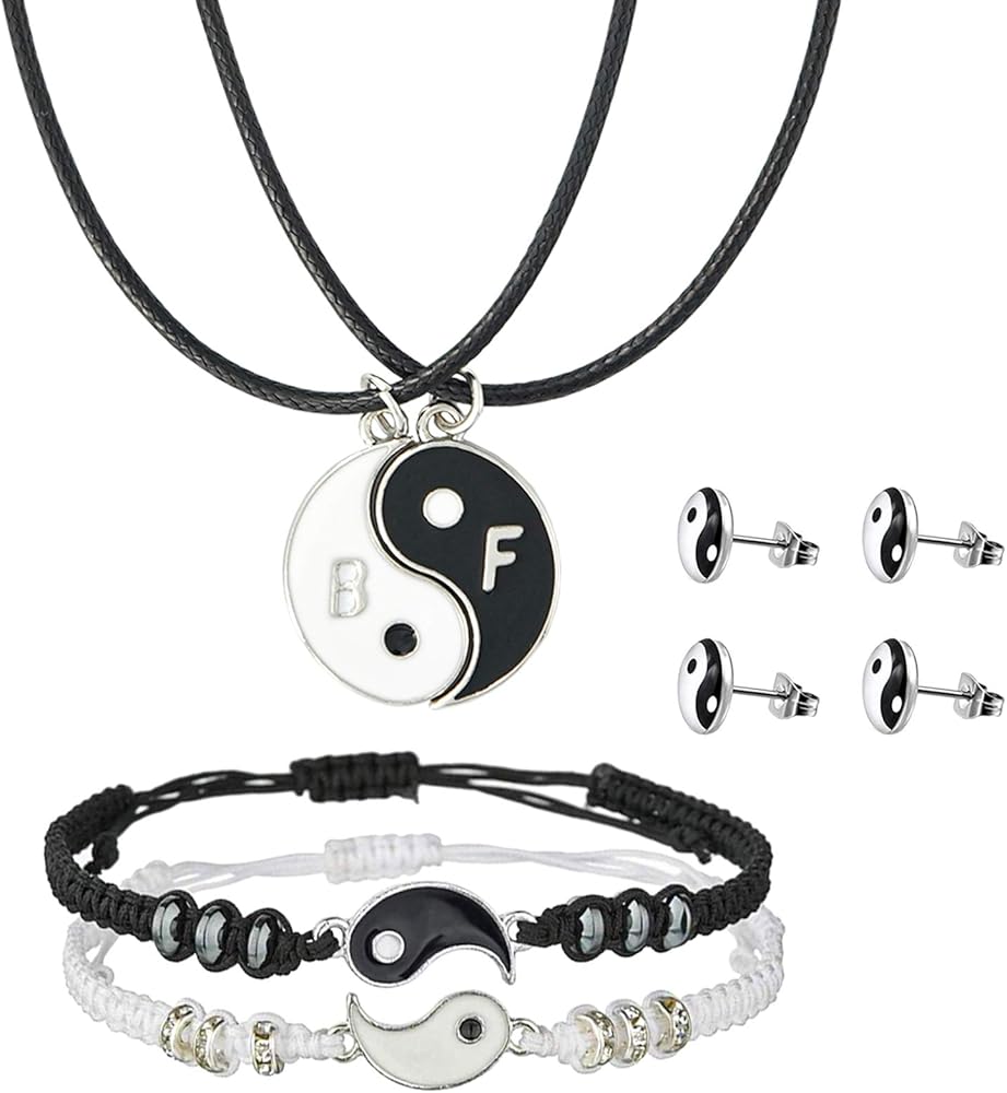 【ما تحصل عليه】: زوج واحد من سوار الصديق المفضل، وزوج من عقد مطابق، وزوجان من أقراط يين يانغ