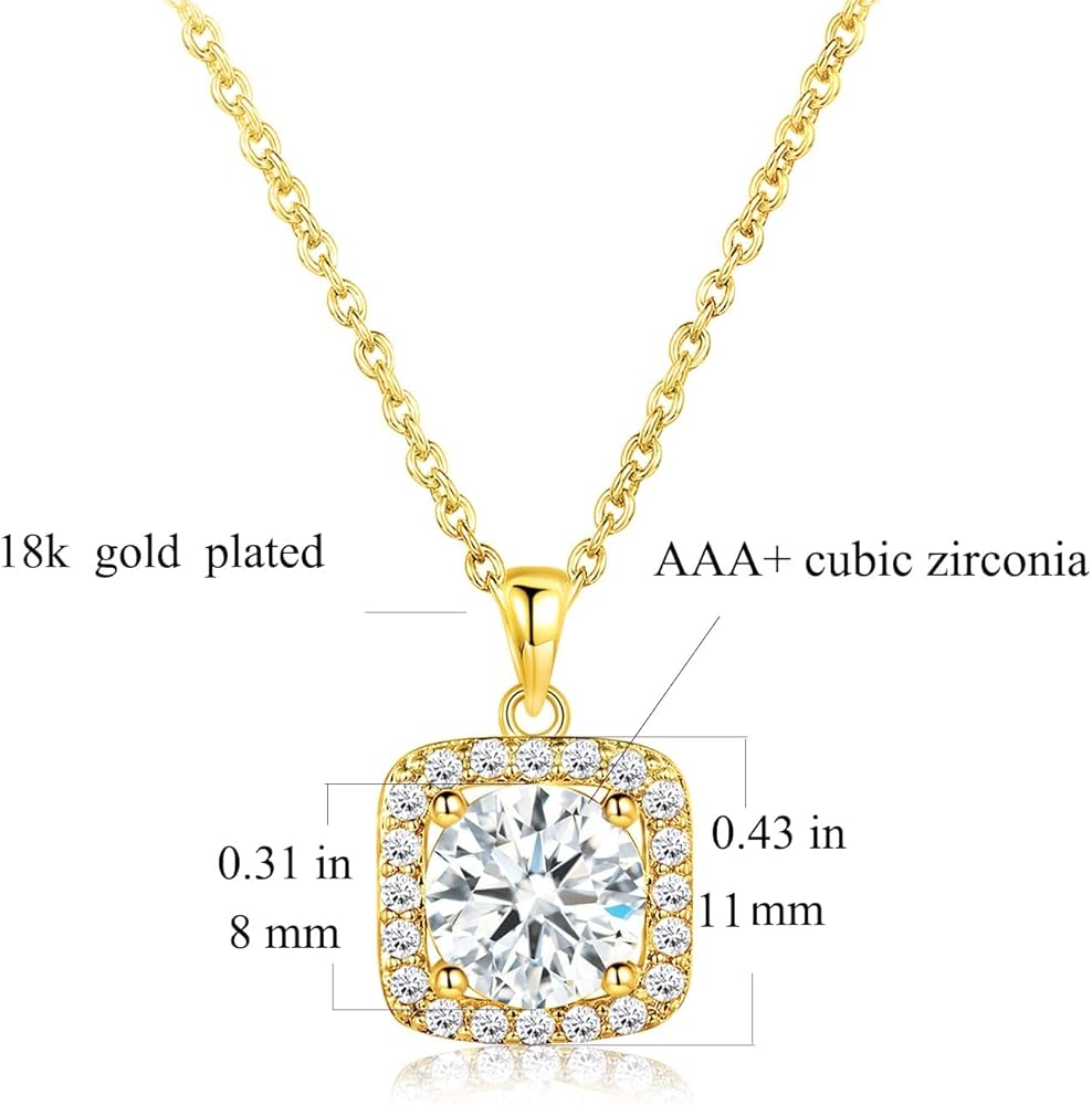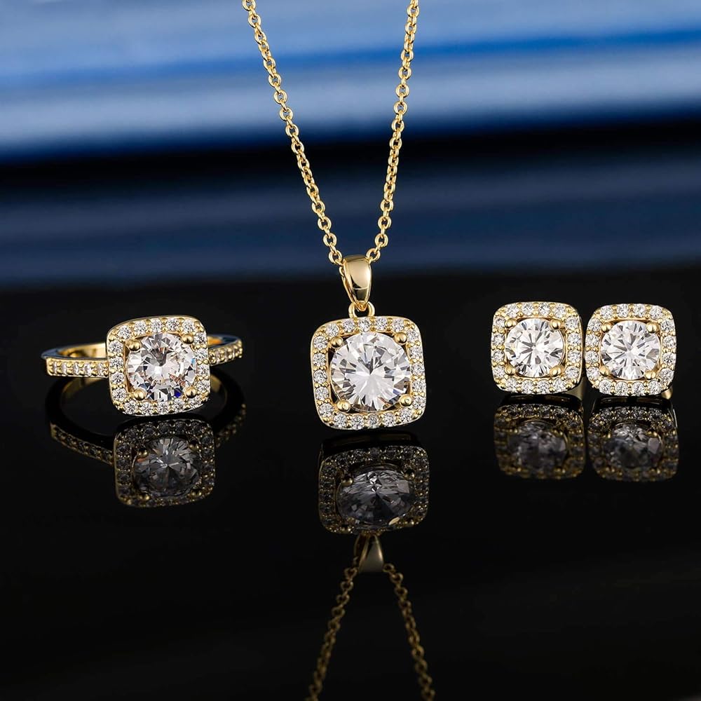 يتضمن طلب واحد 3 أنواع من المجوهرات النسائية - قلادة قلادة من الزركونيا المكعبة المتلألئة على شكل أميرة وأقراط هالة وخاتم وعد