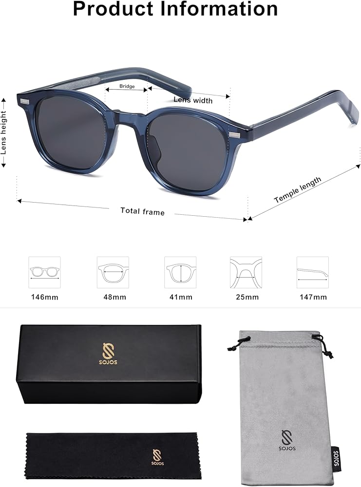 مواد عالية الجودة - هذه النظارات الشمسية الرجالية ذات الطراز المربع القديم من SOJOS مصنوعة من إطارات بروبيونات السليلوز عالية الجودة (نوع واحد من الإطارات البلاستيكية)، وعدسات حماية من الأشعة فوق البنفسجية 400، وأذرع ذات نوى معدنية، ومفصلات معدنية صلبة، كل التفاصيل تضمن لك استخدام وقت طويل.