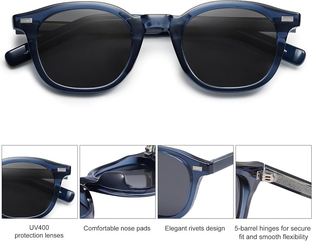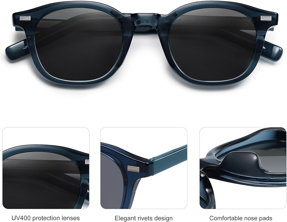 تصميم فريد من نوعه - إطار مربع أنيق ولمسات مسمار فريدة تخلق مظهرًا عصريًا لا يُنسى وهو رائع لأي ملابس. هذه النظارات الشمسية الرجعية هي الخيار الأمثل للأنشطة الخارجية مثل الحفلات، والتقاط صور السيلفي، والقيادة، والتسوق، والسفر، والمشي لمسافات طويلة، وما إلى ذلك. علاوة على ذلك، فهي مناسبة أيضًا كإكسسوار للأزياء الراقية وللارتداء اليومي على مدار العام.