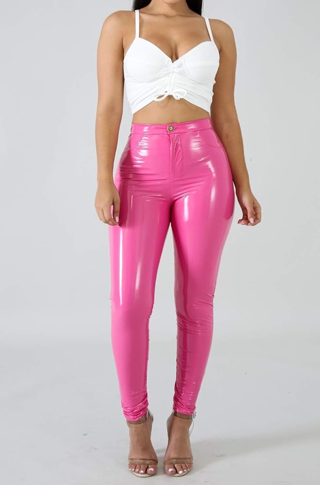 سراويل طويلة للسيدات من Baonmy مصنوعة من الجلد الصناعي الصناعي وبطانة صوف عالية الخصر للشتاء (وردي، L)