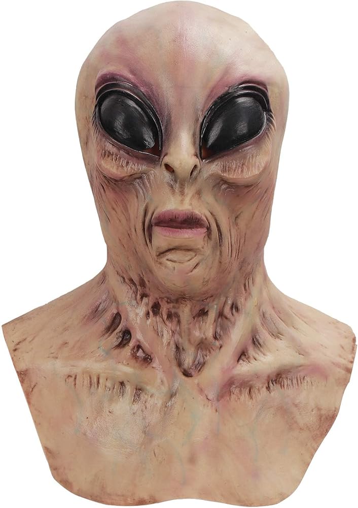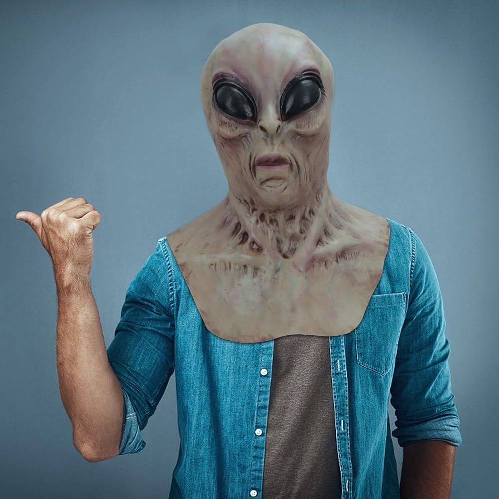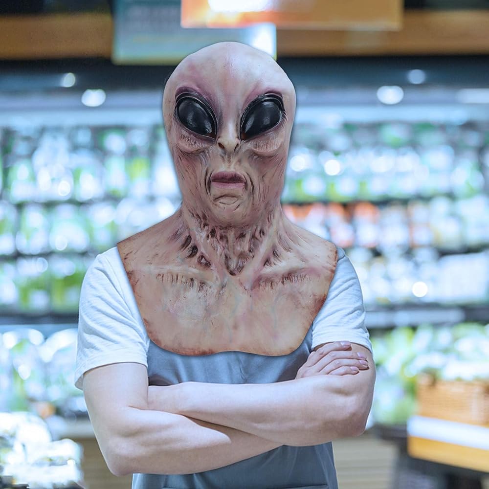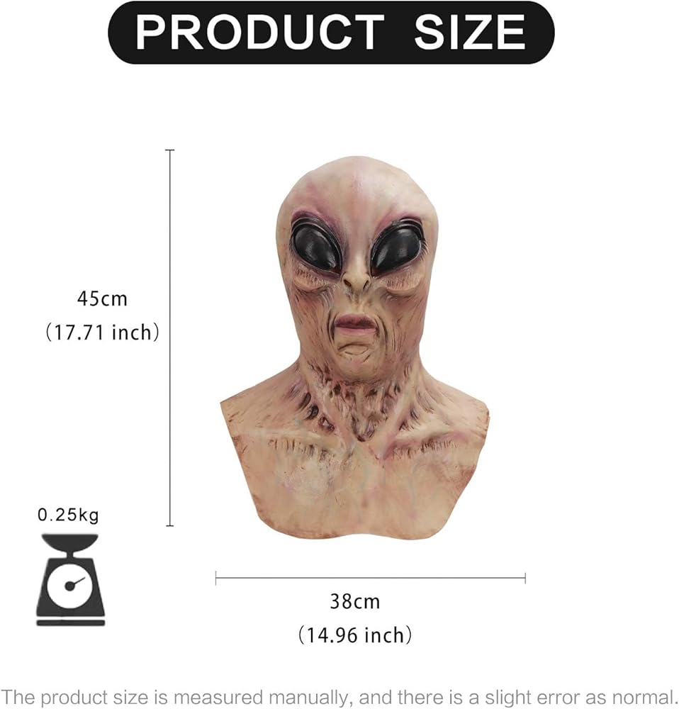 ➤【Realistic Details】- This realistic mask has all the features of alien skin, such as color, wrinkles, collarbone and so on. So you can perfectly disguise yourself as an alien.