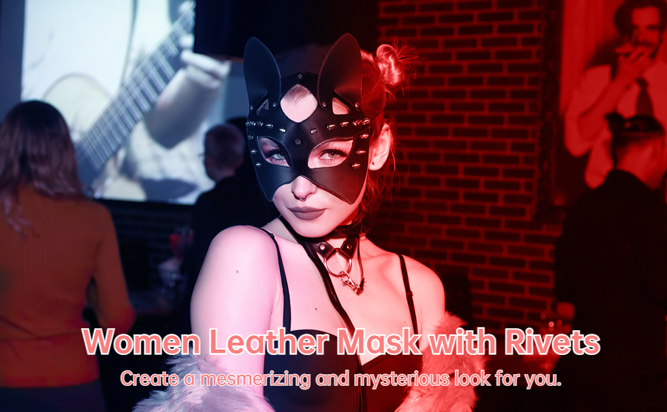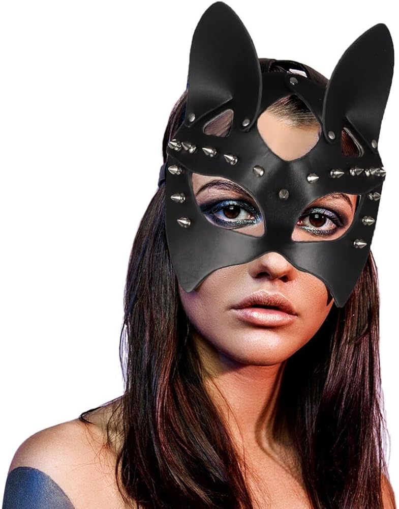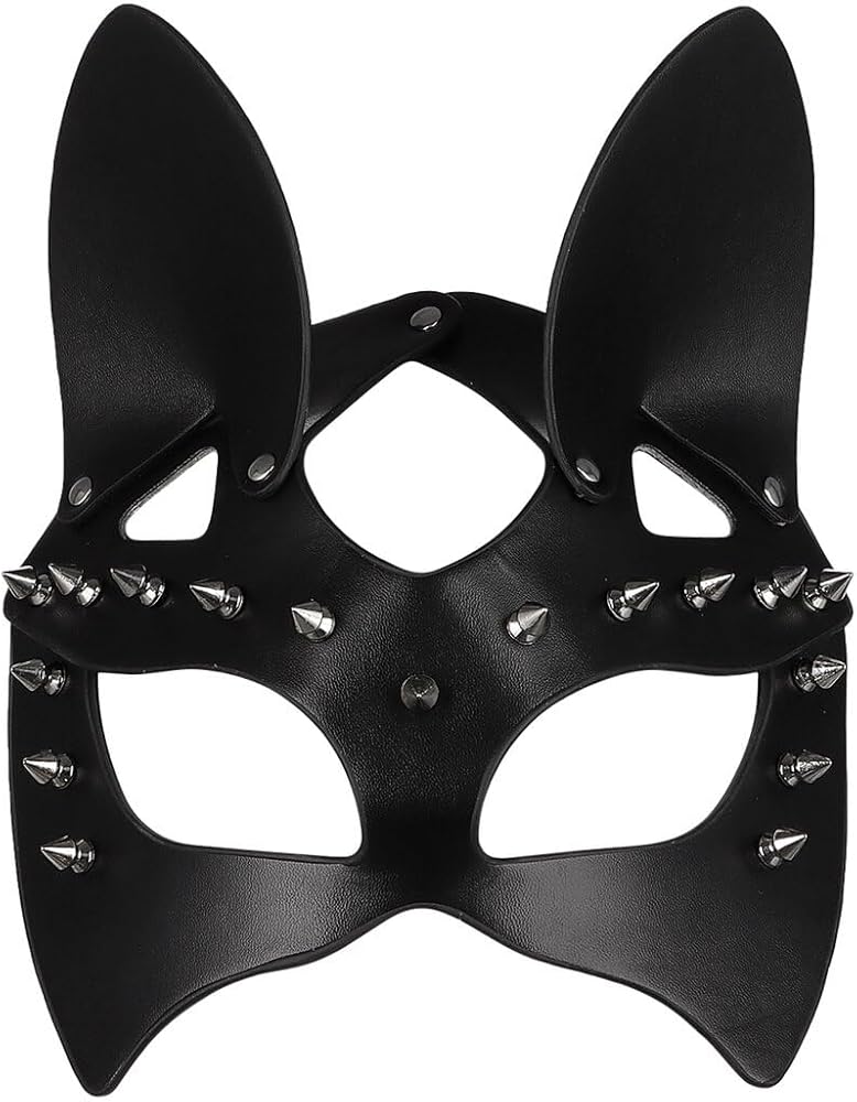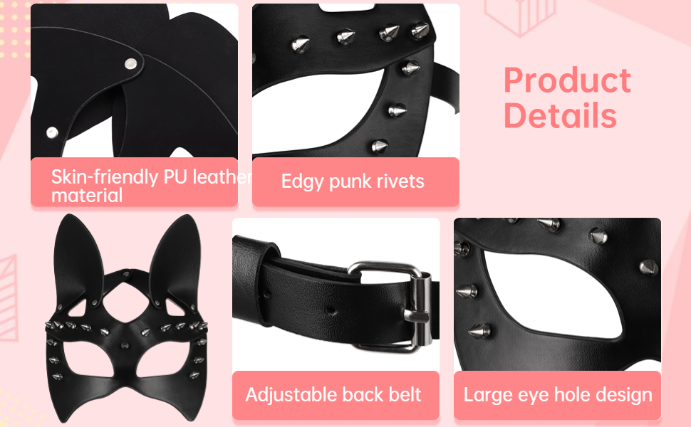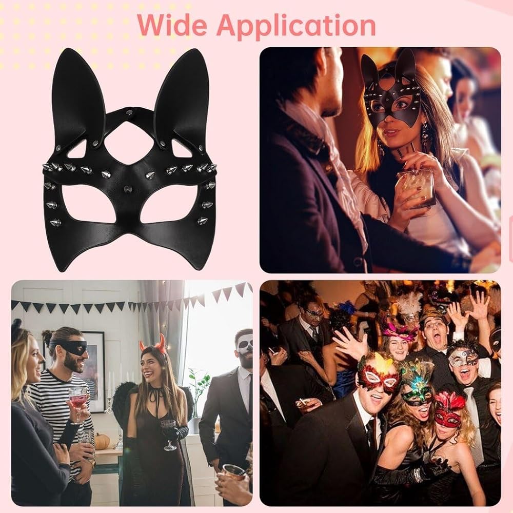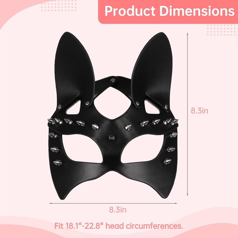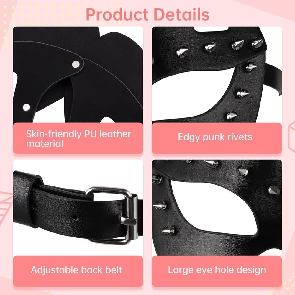 【تصميم مذهل مستوحى من البانك】يعتمد على شكل قطة آسر نصف وجه ومزين بمسامير البانك الحادة، يضيف القناع الجلدي الخاص بنا لمسة من الجاذبية المتمردة إلى مظهرك. يحولك بشكل لطيف إلى شخصية غامضة وساحرة، مما يترك انطباعًا دائمًا لدى الآخرين أينما ذهبت.
