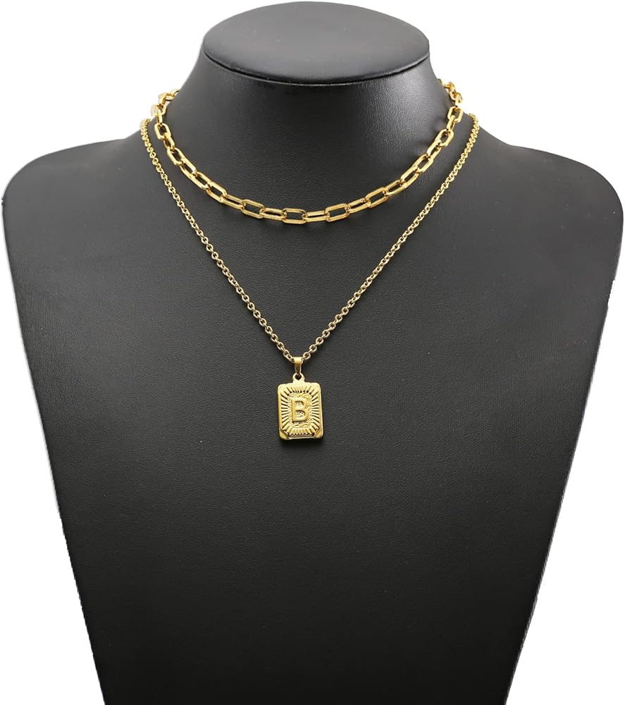 • ♥ مطلي بالذهب عيار 18 قيراط -- فولاذ مقاوم للصدأ عالي الجودة، مطلي بالذهب عيار 18 قيراط. حافظ على اللون إلى الأبد. قلادتنا الأولية البسيطة والأنيقة ذات الطبقات خالية من الرصاص والنيكل ولا تسبب الحساسية.