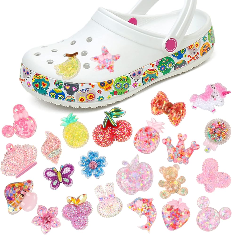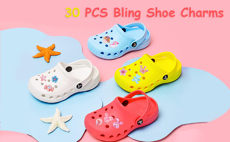 اوهوميني 30 قطعة من تعليقات أحذية كلوج اللامعة، زينة أحذية كروكس اللطيفة للبنات