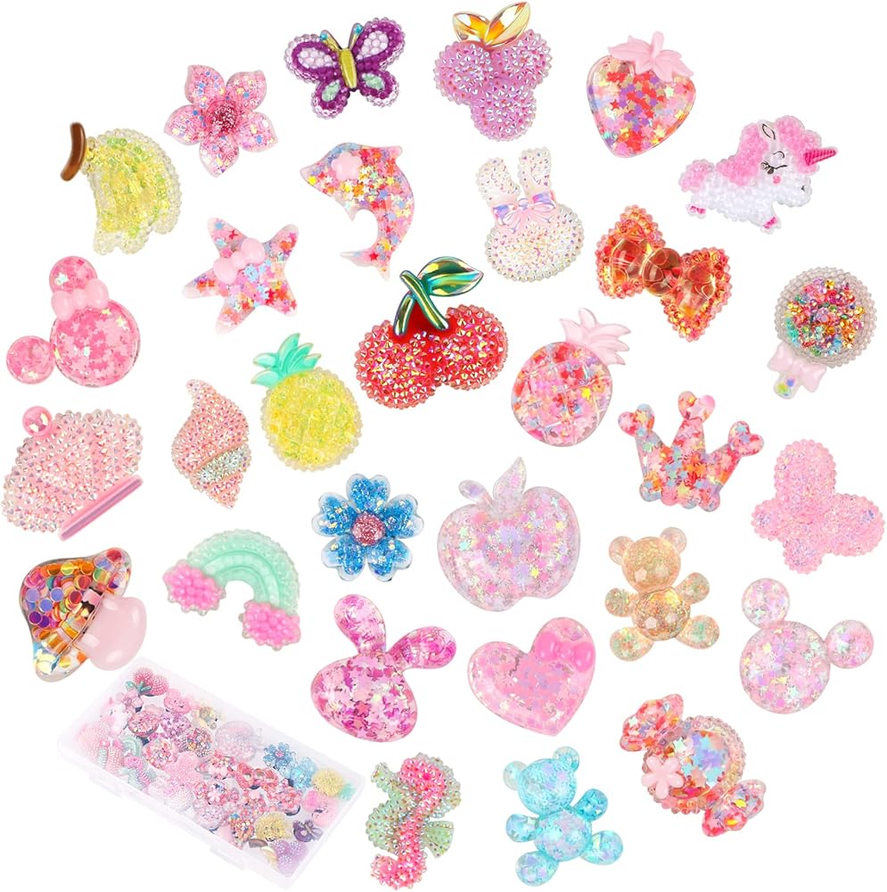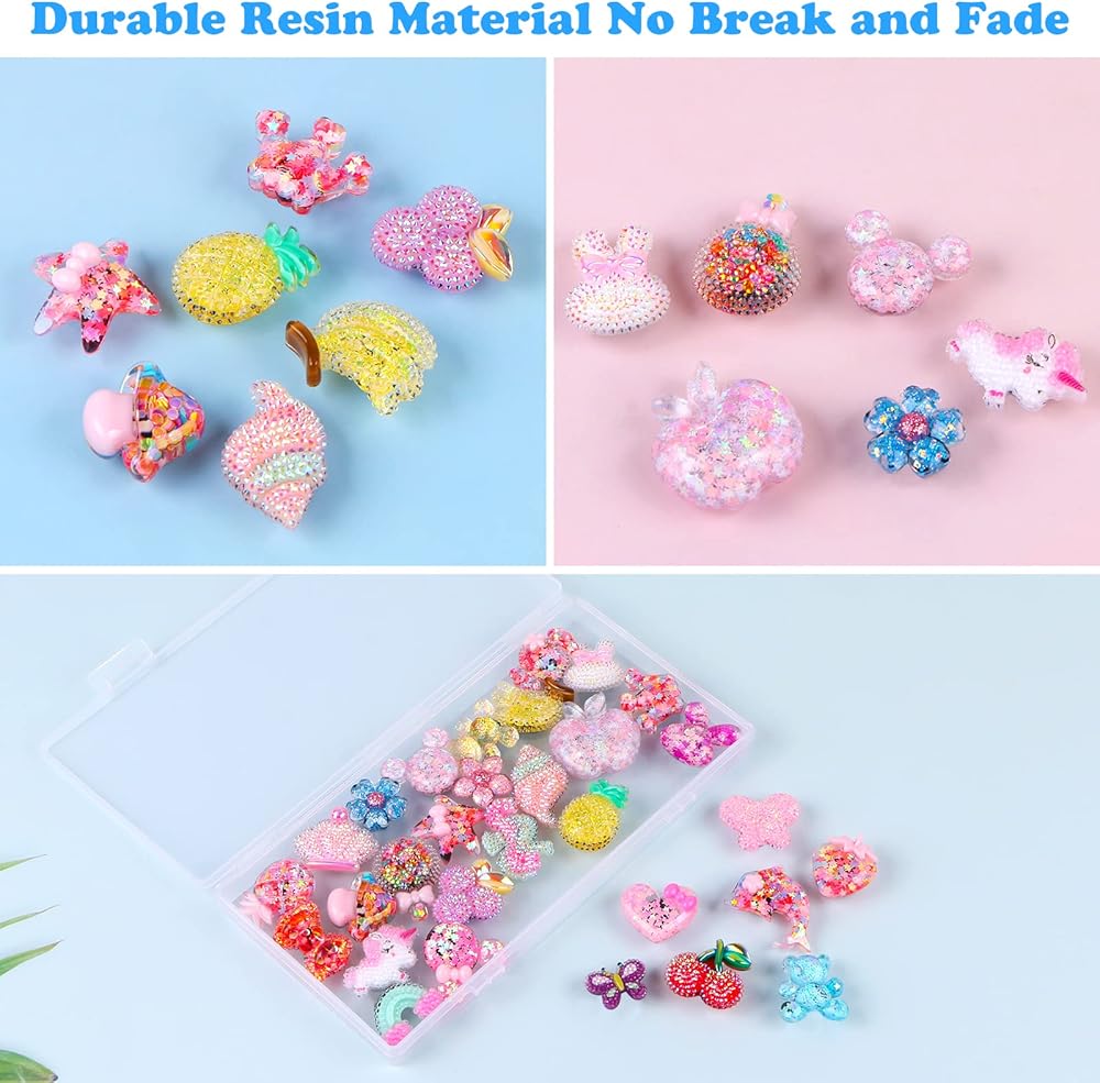 30 قطعة من تعليقات احذية كلوج لامعة من بلاستيك اوهوميني لطيفة لتزيين احذية كروكس للبنات والمراهقات والنساء مع ازرار اكسسوارات للاحذية لهدايا الحفلات واعياد الميلاد مع صندوق بلاستيكي