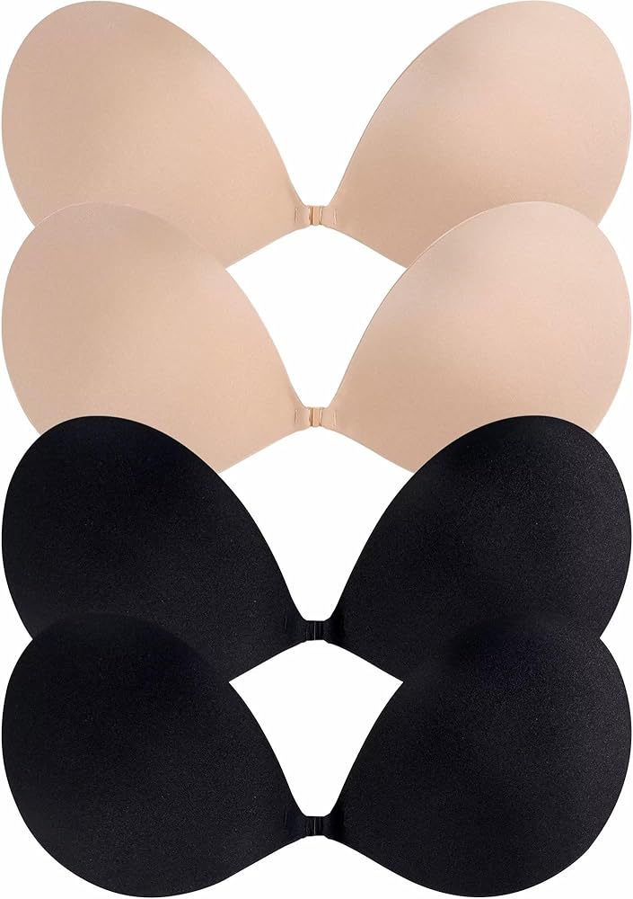 القيمة مقابل المال والاستخدام متعدد الاستخدامات: مجموعة حمالة الصدر هذه المكونة من 4 قطع بدون ظهر وبدون حمالات مع تصميم حافة أنيق ونسيج بلون عاري أو أسود يجعل ملابسك الداخلية غير مرئية. حمالات الصدر اللاصقة لدينا مثالية لجميع أنواع الملابس، بدءًا من فساتين الزفاف وفساتين الرسن وحتى ملابس السهرة