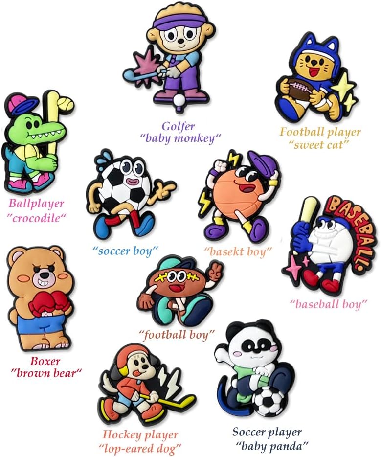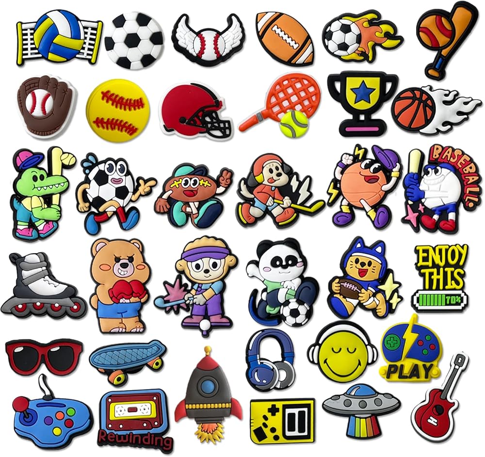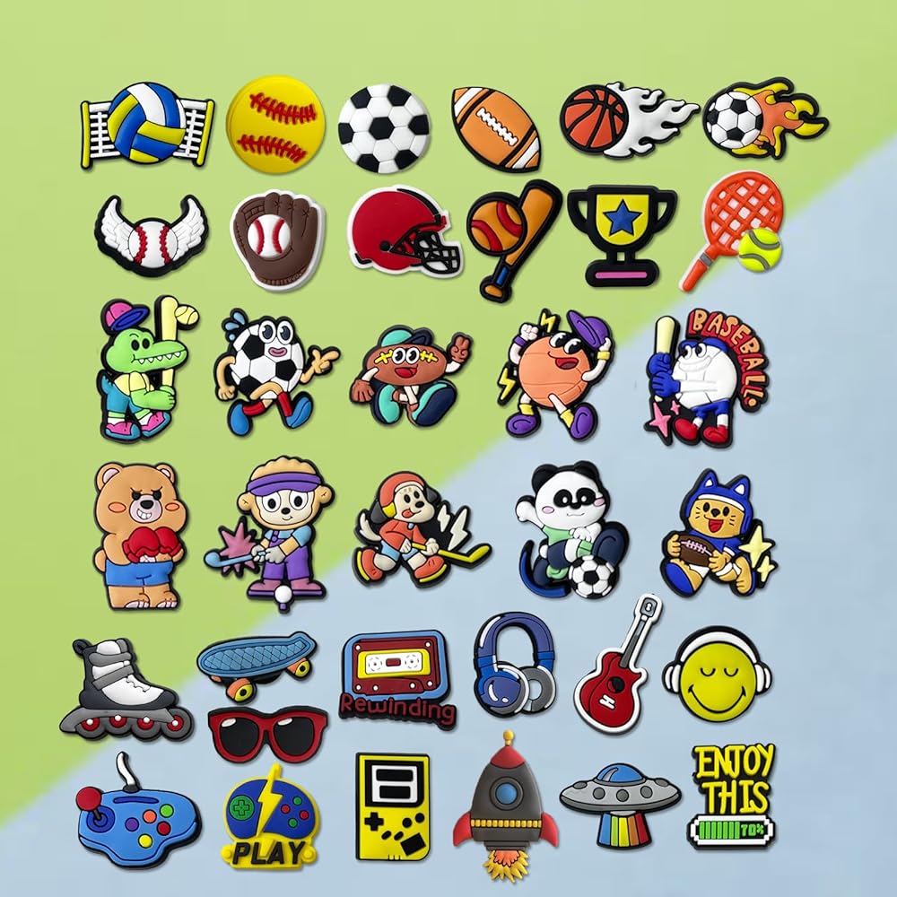 🌠Boys Shoe Charms:35 pcs sports themed shoe charms for boys/teens. Included the favorite designs charms that boys styles,as sports,games themed,cute cartoon characters