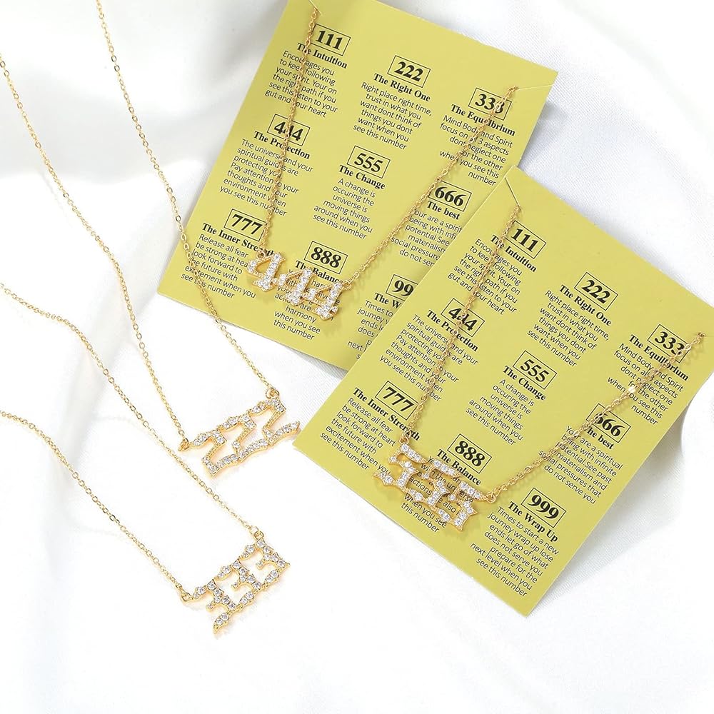 🎁【مواد عالية الجودة】: قلادة 444 مصنوعة من زركونيا مكعب عالي الجودة تم اختياره يدويًا 5A+ ومطلية بالذهب عيار 18 قيراط، لا تفقد بريقها، وخالية من النيكل، ولا تسبب الحساسية وتدوم لفترة طويلة. تصميم خفيف الوزن يمنحك تجربة ارتداء مريحة.