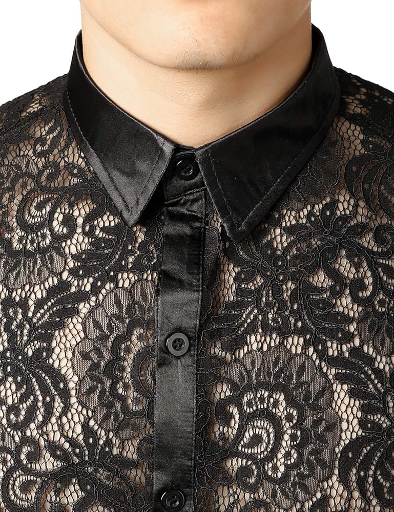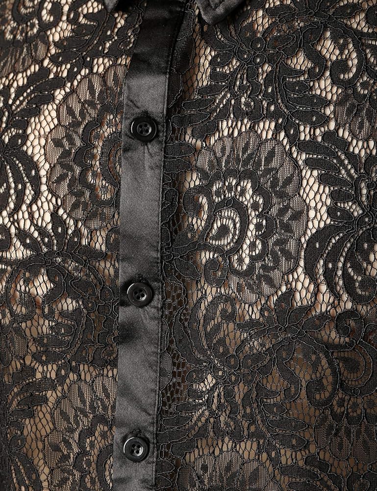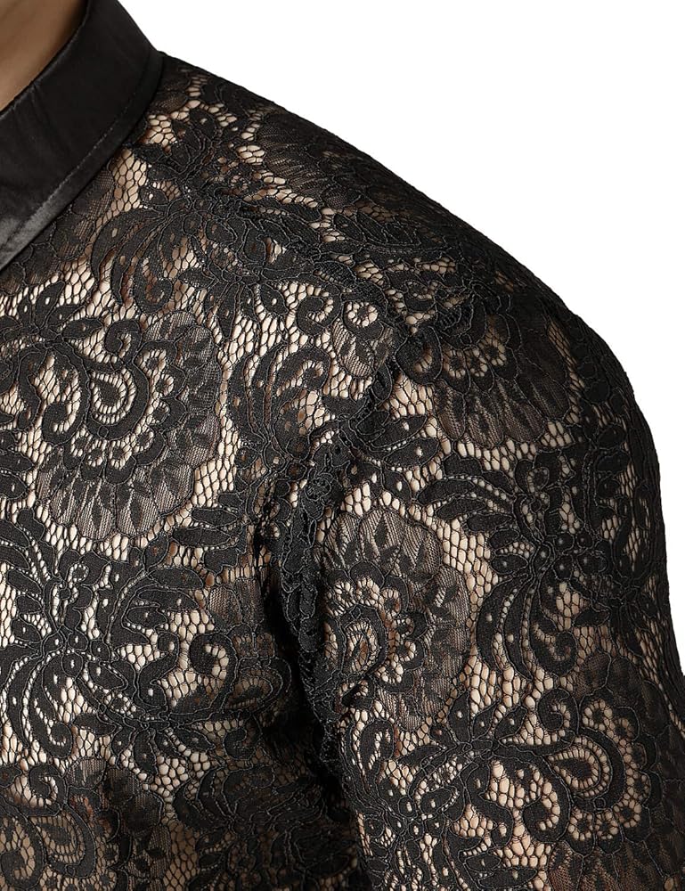 • قماش جاكار دانتيل عالي الجودة - مريح وخفيف الوزن - نسيج دانتيل عصري قابل للتمدد وناعم، مما يجعل هذا القميص الشبكي مساميًا وصديقًا للبشرة.