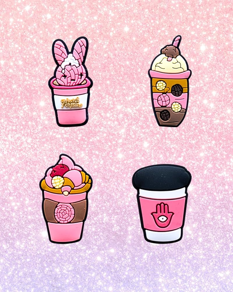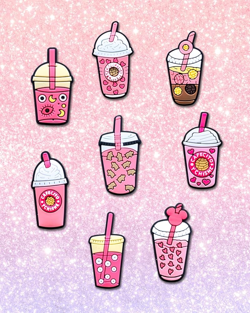 【Perfect Gifts】The pink drink shoes charms of cartoon are very cool and mysterious, perfect for kids's party favors, birthday gifts ect.