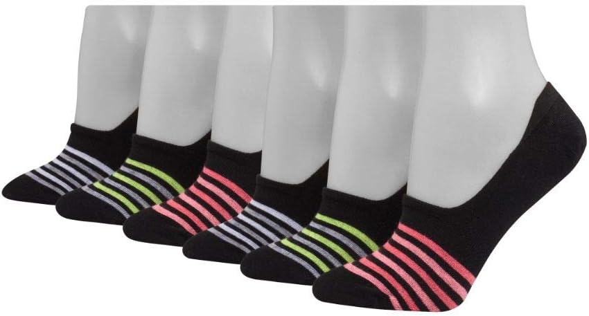 جورب C9 Champion نسائي بطانة، أسود مع خطوط ملونة، 5-9
