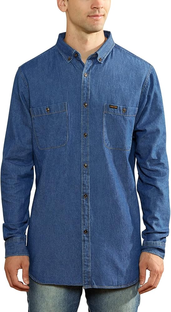 - قميص بأزرار من نسيج قطني عالي التحمل، مريح في الارتداء، مناسب للعمل الكاجوال