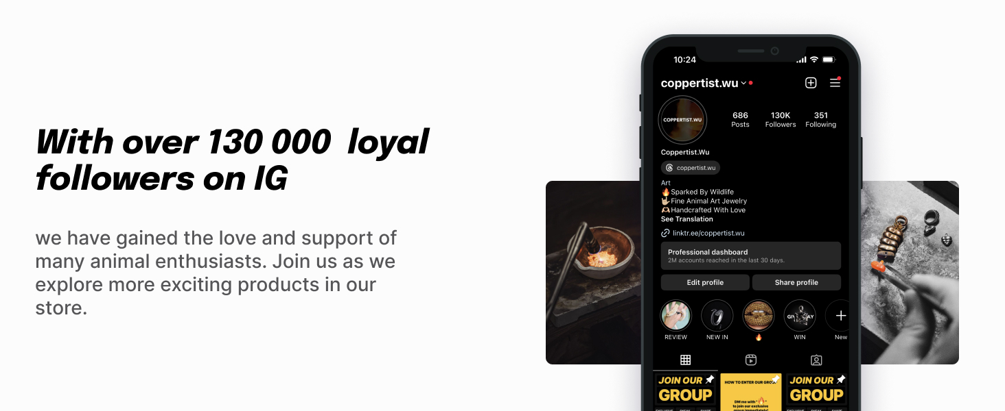 نبذة عنا: نحن نقدم قطعًا مصنوعة بدقة باستخدام أجود المواد والحرفية فقط. نريد الأفضل لعملائنا. مهمتنا هي إعادة نقش جمال الحيوانات وتصميم أعمال فنية أكثر روعة وعملية، وذلك بفضل الحياة البرية. ابحث عن COPPERTIST.WU على أمازون لمزيد من تصميماتنا المتميزة!