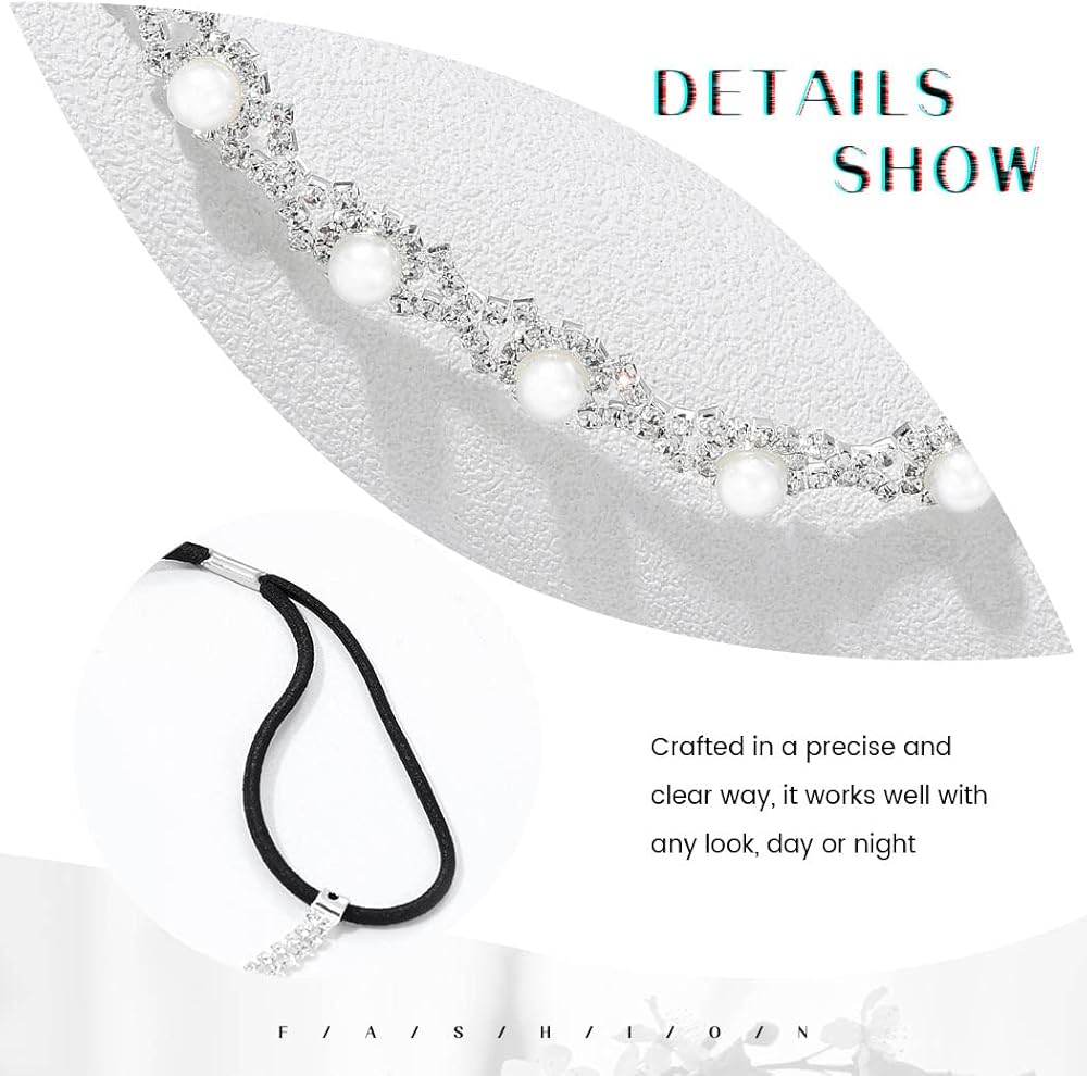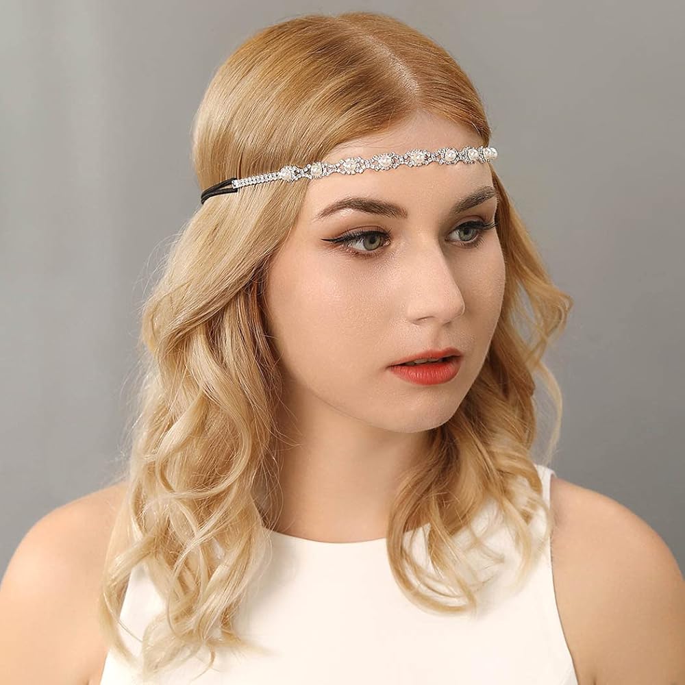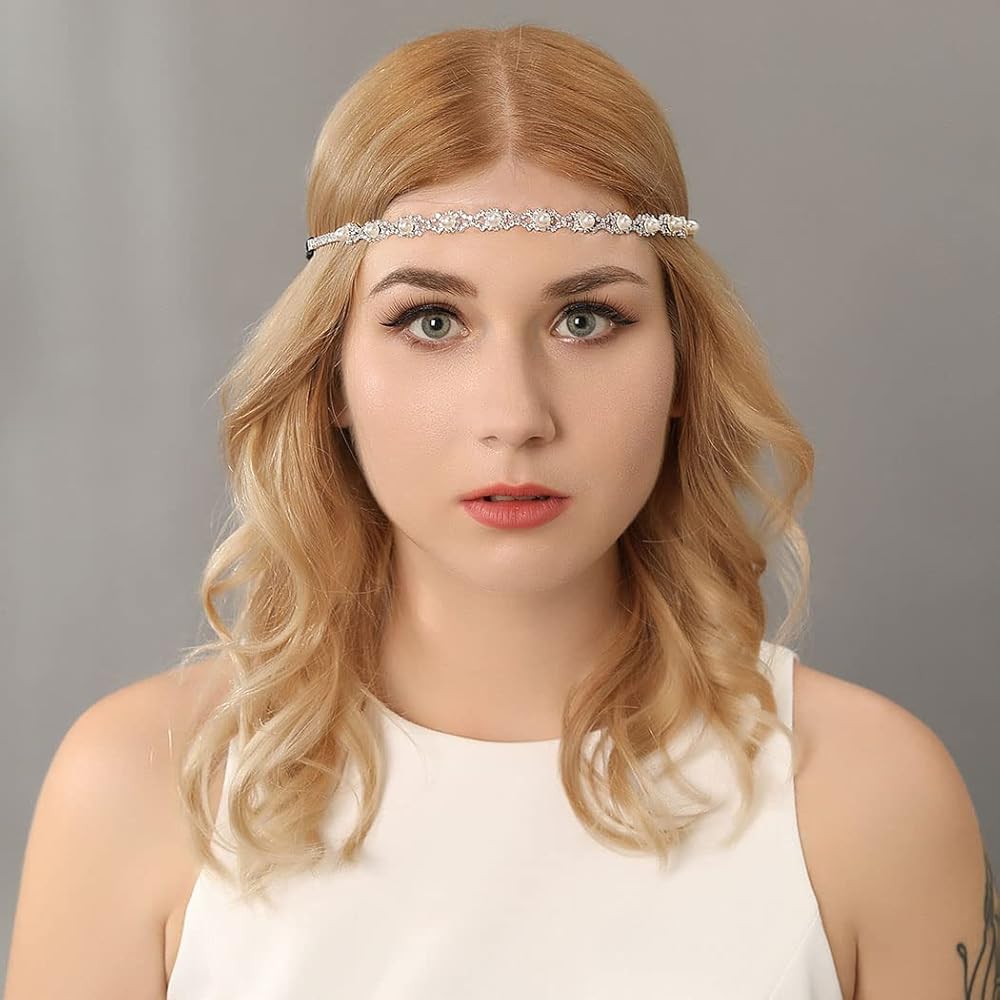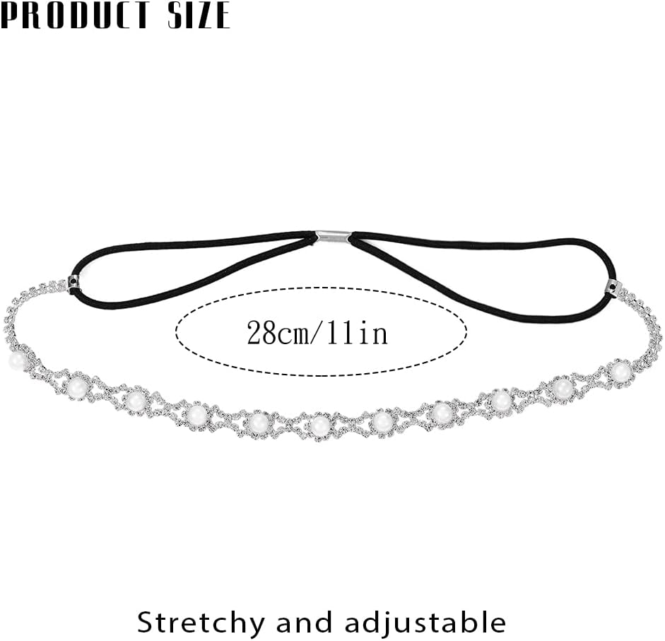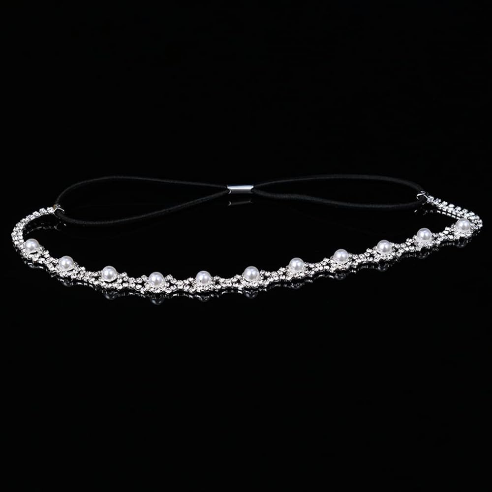 عصابة الرأس من حجر الراين مصنوعة من خليط معدني وأحجار الراين اللامعة واللؤلؤ، فستان شعر بتصميم بسيط وأنيق لعرائس الزفاف.