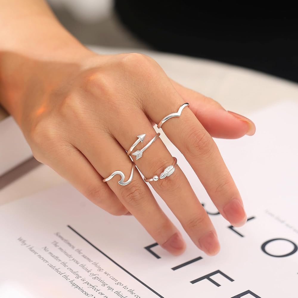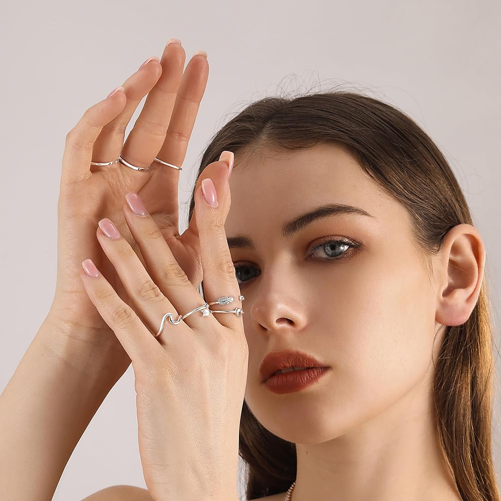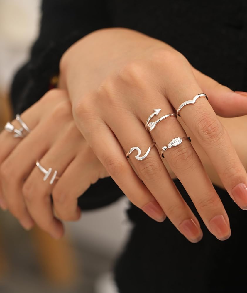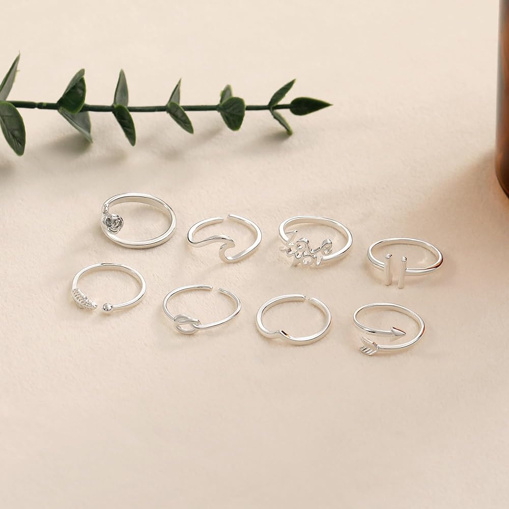 【تصميم خاص】يأتي مع 8 أنماط مختلفة من الخواتم النسائية بسعر خاتم واحد. يشمل "أحبك"، الوردة، شكل V، شكل القضيب، الريش، عقدة الحب، السهم، حلقة مموجة. يمكنك ارتداؤه بمفرده أو مزجه ومطابقته مع خواتم أخرى لإظهار أسلوبك الشخصي. خفيف الوزن للغاية ومريح في الارتداء. بسيطة تماما وأنيقة في كل شيء.