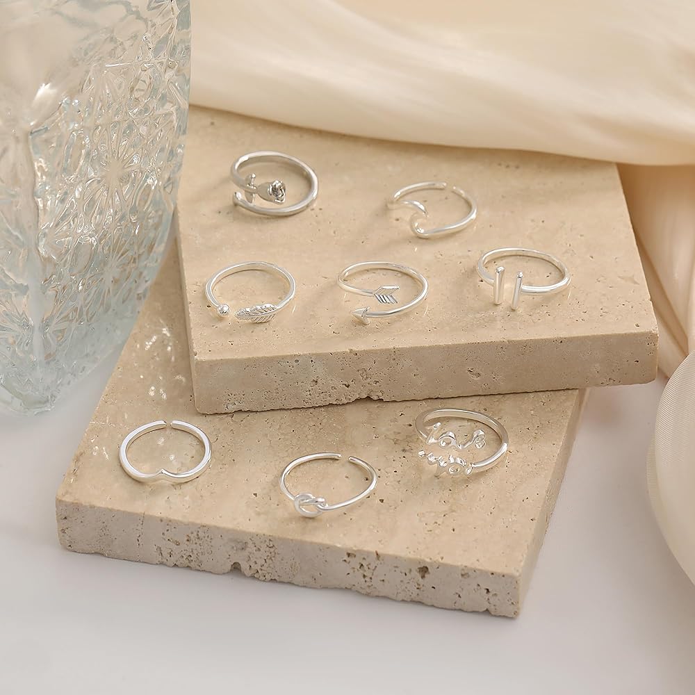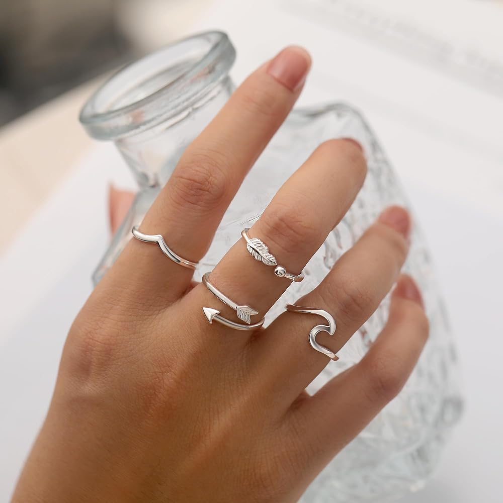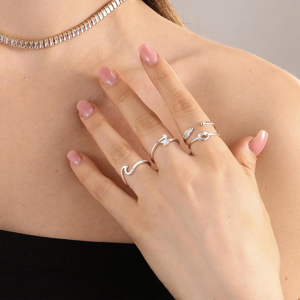 【تصميم خاص】يأتي مع 8 أنماط مختلفة من الخواتم النسائية بسعر خاتم واحد. يشمل "أحبك"، الوردة، شكل V، شكل القضيب، الريش، عقدة الحب، السهم، حلقة مموجة. يمكنك ارتداؤه بمفرده أو مزجه ومطابقته مع خواتم أخرى لإظهار أسلوبك الشخصي. خفيف الوزن للغاية ومريح في الارتداء. بسيطة تماما وأنيقة في كل شيء.