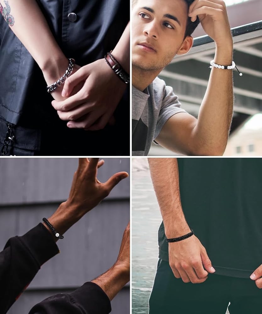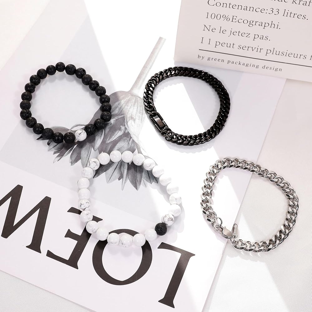 سوار رجالي: يمكنك الحصول على قطعتين من أساور الخرز القابلة للتعديل، وسوار سلسلة ربط أسود وسوار سلسلة ربط فضي في وقت واحد. هذا السوار كلاسيكي وعصري، والذي يمكن أن يضيف نقاطًا إلى سحرك.
