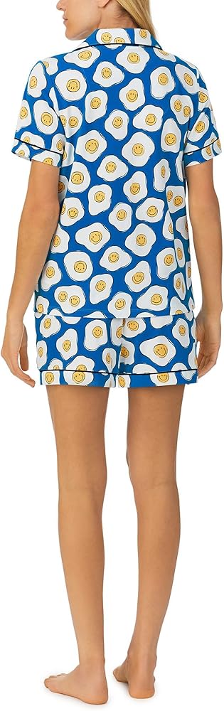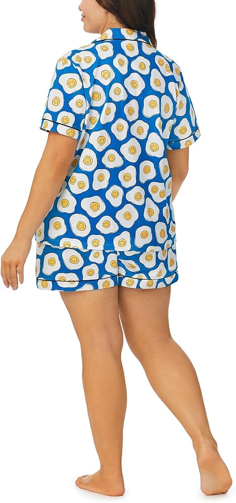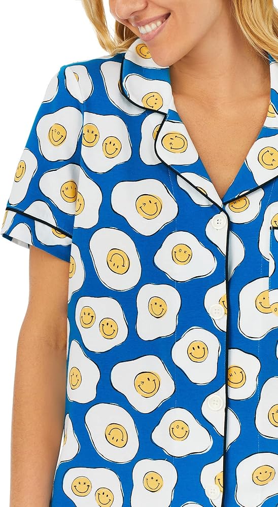 Wear the BedHead Pajamas Zappos Print Lab: Sunny Side Up Short Sleeve Shorty Set and sleep in comfort. Regular fit. Notch collar. Contrast knit piping inserted around the collar. Self-sleeve bands with contrast knit piping. Four buttons down the center front. Pocket on the chest. Fully elasticated waistband. Pocket on the sides. Pull-on closure. Self-hem bands with contrast knit piping. 93% organic cotton, 7% elastane. Machine wash, tumble dry.