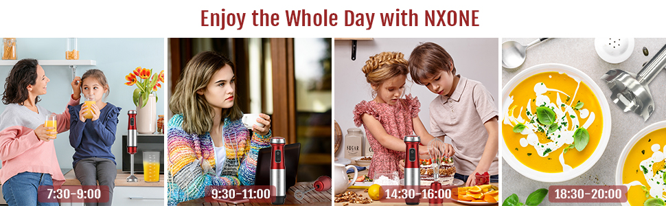 قوي في الوظيفة - يعتمد الخلاط اليدوي NXONE على تصميم متغير للتحكم في السرعة بدون خطوات، ويمكن تحقيق التكسير أو التحريك أو العصير المثالي من خلال تعديل السرعة المتغيرة.