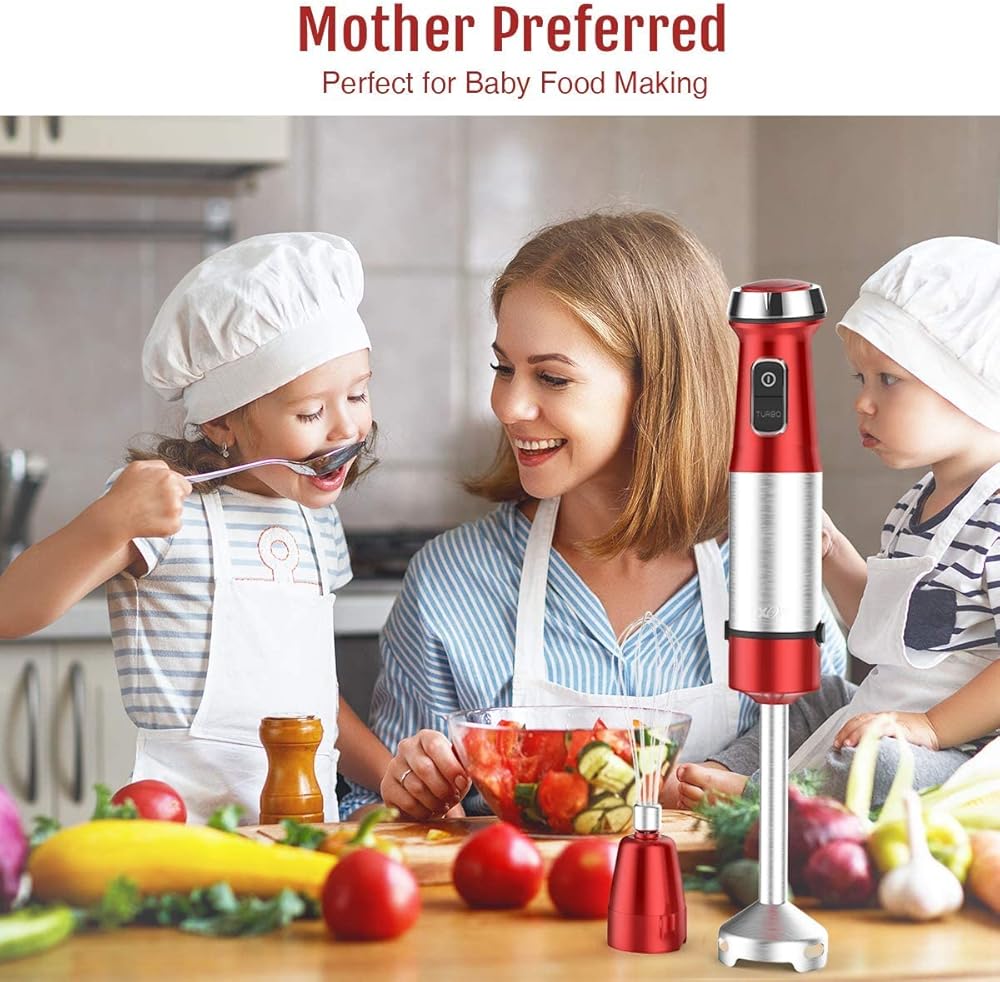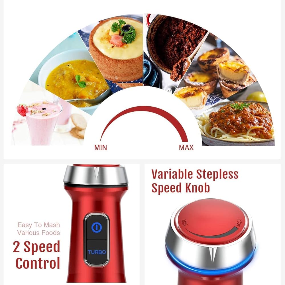 تصميم متطور - يتم قفل ذراع المزج القابل للفصل المزود بشفرة ثابتة في جسم المحرك لسهولة التشغيل. تمزج الشفرة الثابتة المصنوعة من الفولاذ المقاوم للصدأ على شكل حرف S المكونات الصلبة بسرعة لصنع العصائر أو مخفوق الحليب أو الحساء أو أغذية الأطفال، كما يُعد ملحق الخفق عالي الجودة إضافة مثالية.