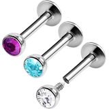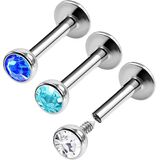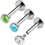 BanaVega 3 قطعة من الفولاذ الجراحي داخليًا مترابطة Labret 16 جرام 1/4 6 مللي متر 3 مللي متر أقراط اللولب الكريستالي الزنمة ثقب المجوهرات رؤية المزيد من الألوان