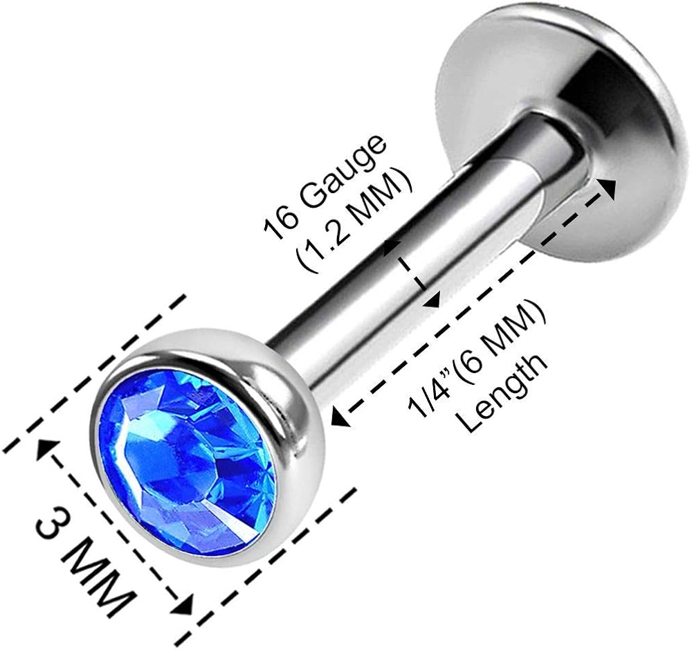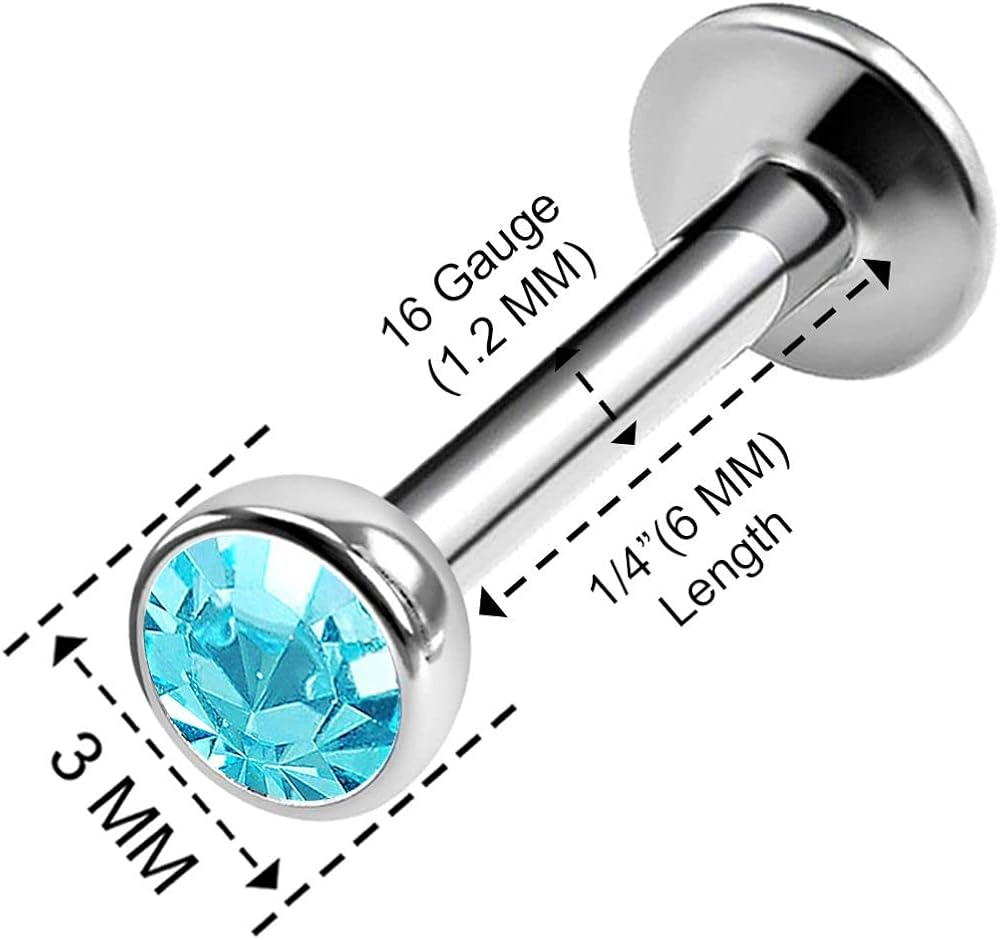 • YOU WILL GET Three pieces of 16g (1.2mm) 1/4" (6mm) 316L Surgical Steel internally threaded, 3mm crystal ball end. One piece of 16g (1.2mm) 1/4" (6mm) 316L Surgical Steel internally threaded jewelry, 3mm Clear crystal ball end. One piece of 16g (1.2mm) 1/4" (6mm) 316L Surgical Steel internally threaded plugs 3mm Aquamarine crystal ball end. One piece of 16g (1.2mm) 1/4" (6mm) 316L Surgical Steel internally threaded monroe 3mm Sapphire crystal ball end.