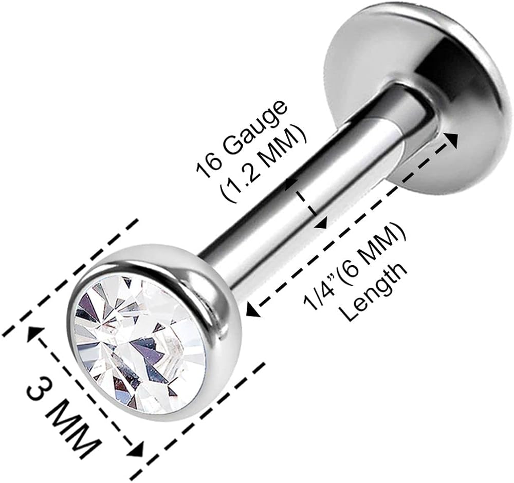 • CRYSTAL tragus piercing twinkle and sparkle, adorning your piercing and capturing attention. They look stunning for a special occasion and make a great gift too. PRODUCT CHARACTERISTICS : lip piercing 16g, labret piercing jewelry, labret jewelry 6mm, 16g 6mm labret, surgical steel labret, lip ring balls.