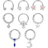 Dochais 8 قطع خواتم الحاجز 16 جرام مجوهرات الحاجز الفولاذ المقاوم للصدأ الحاجز الأنف خواتم فراشة تشيكوسلوفاكيا القلب الحاجز الدائري استرخى Daith اللولب الغضروف ثقب الأنف الثقب المجوهرات