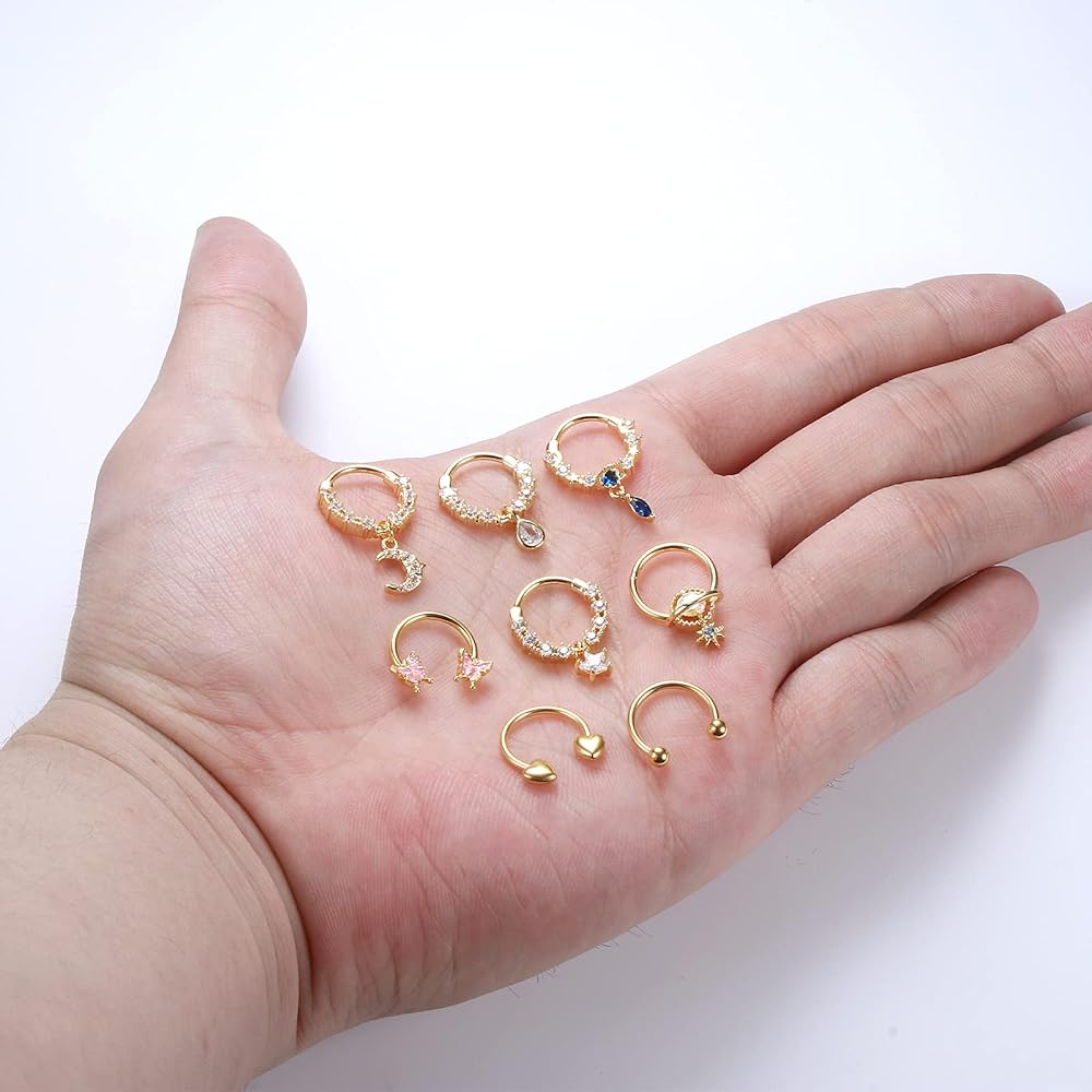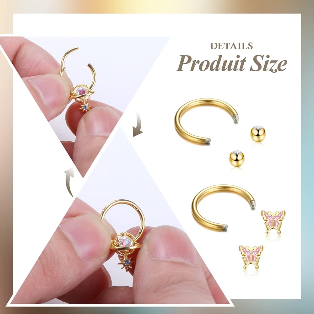 • 【استخدامات متعددة】يمكن استخدام هذه المجموعة من حلقات الأنف الحاجزة كثقب للحاجز، أو أقراط حلزونية، أو ثقب دايث، أو طوق قرط غضروف، أو ثقب تراجوس أو ثقب رخ.