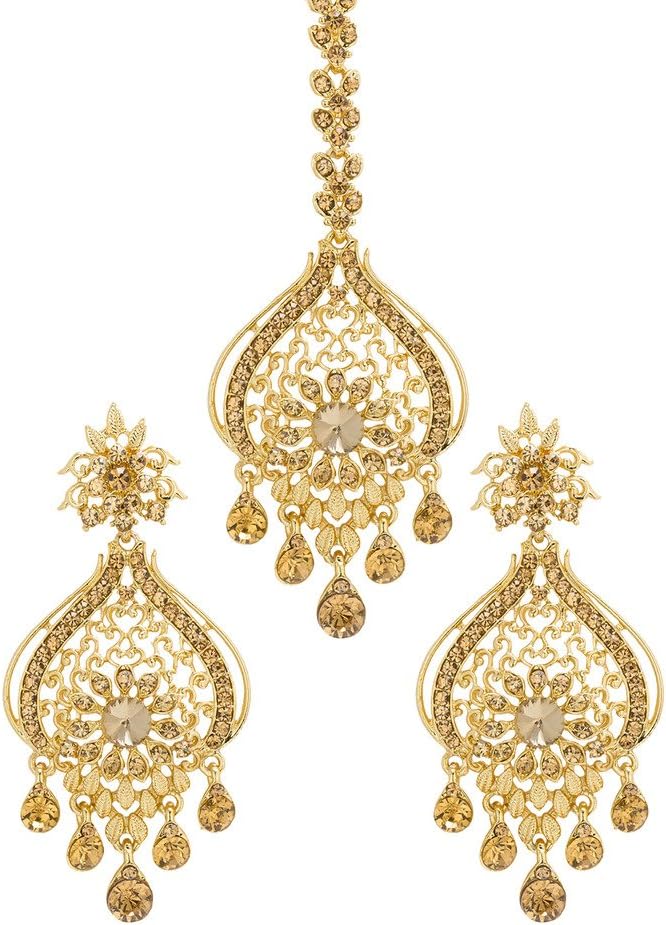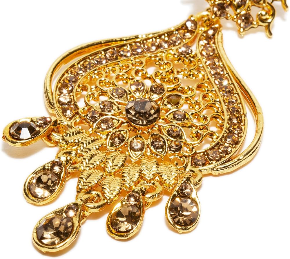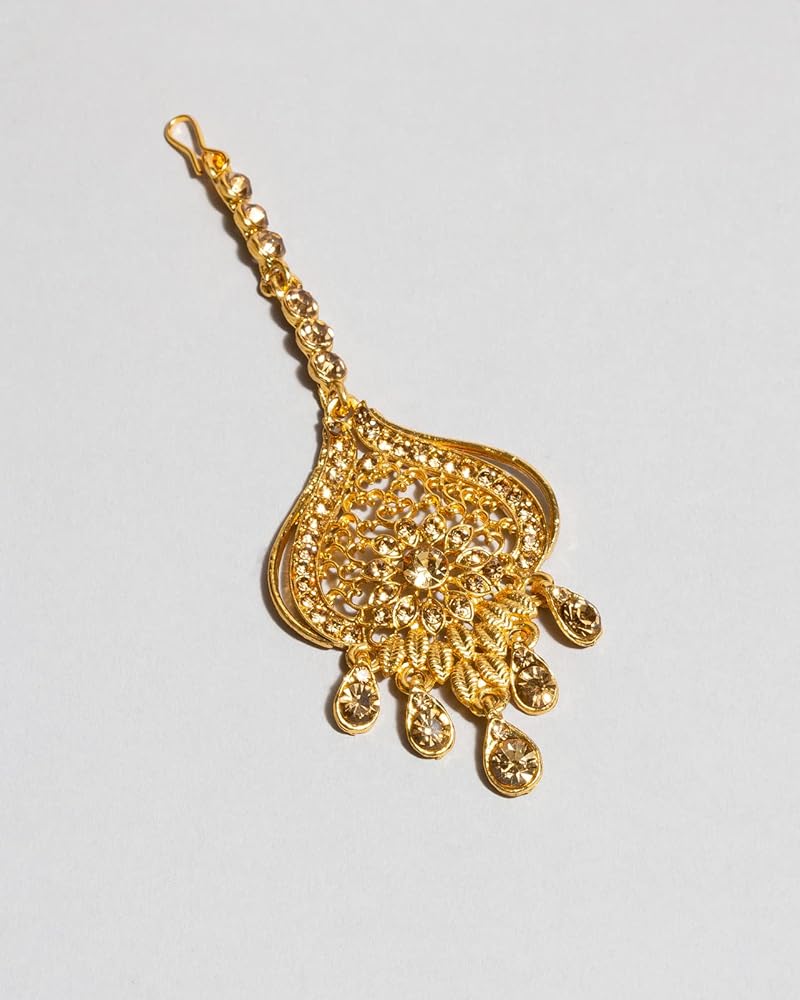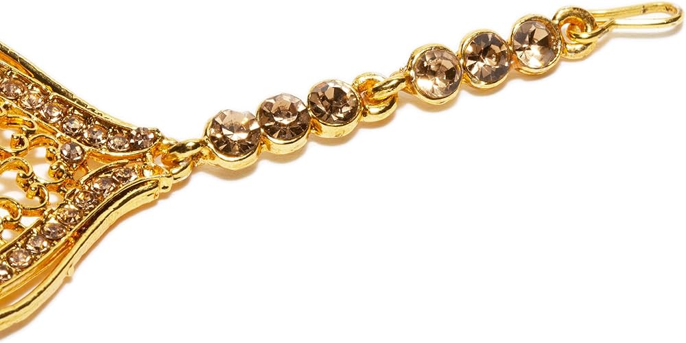 بيندهاني قطعة رأس ذهبية من حجر الراين مانغ تكا وأقراط هندية للنساء