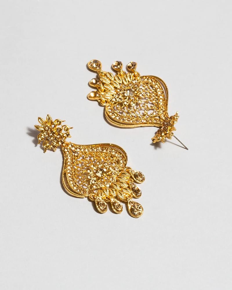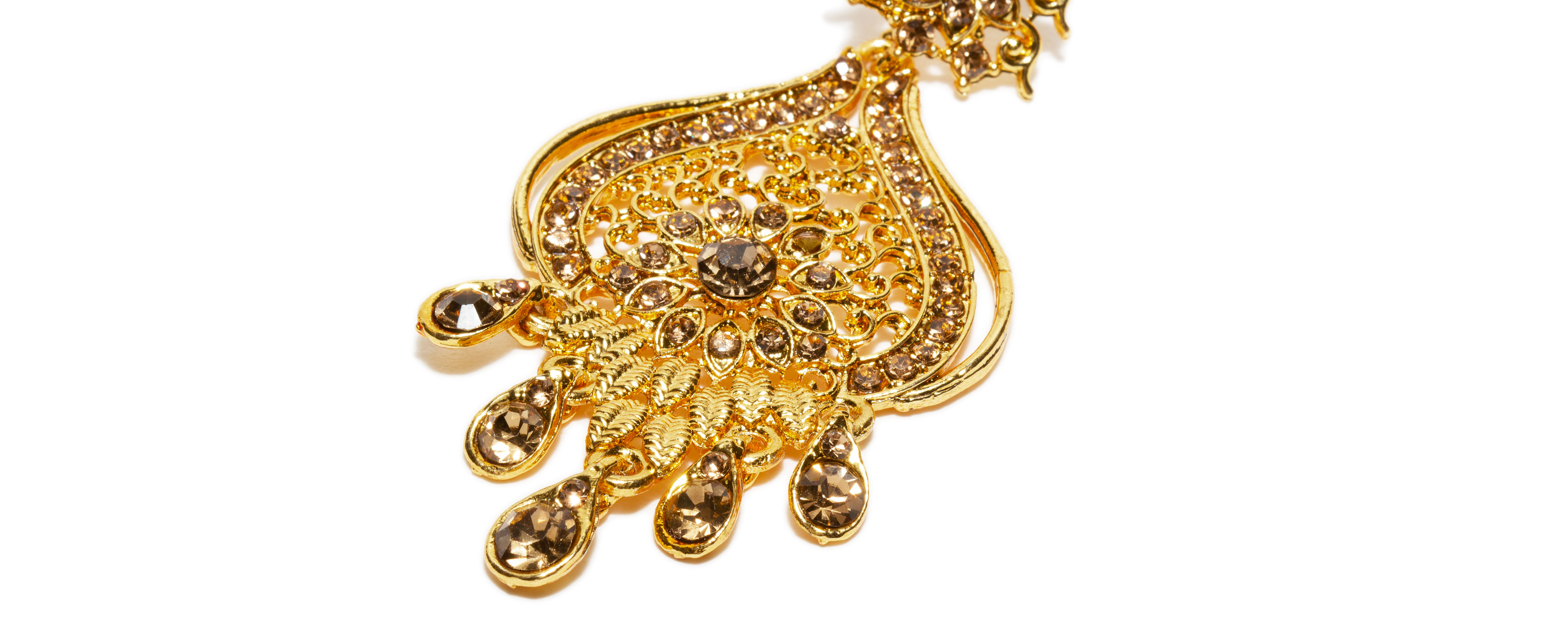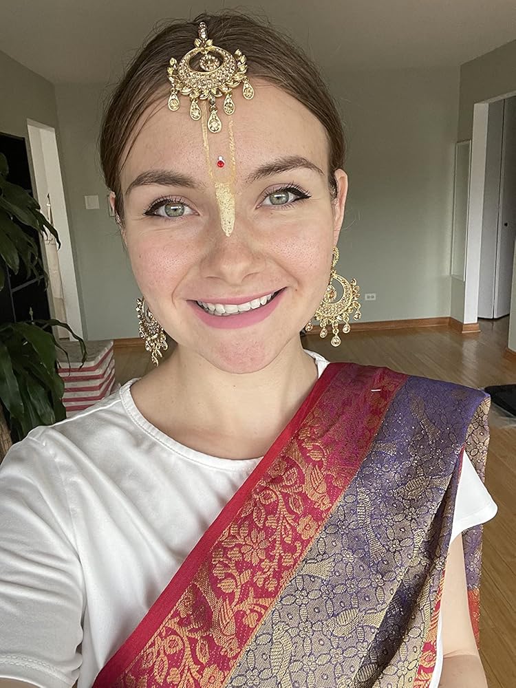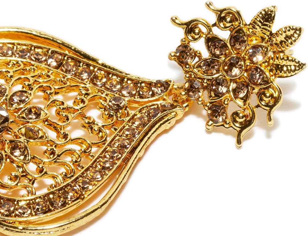 بيندهاني قطعة رأس ذهبية من حجر الراين مانغ تكا وأقراط هندية للنساء