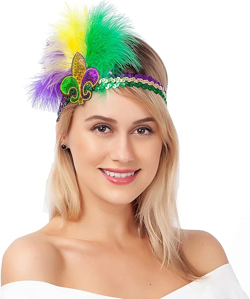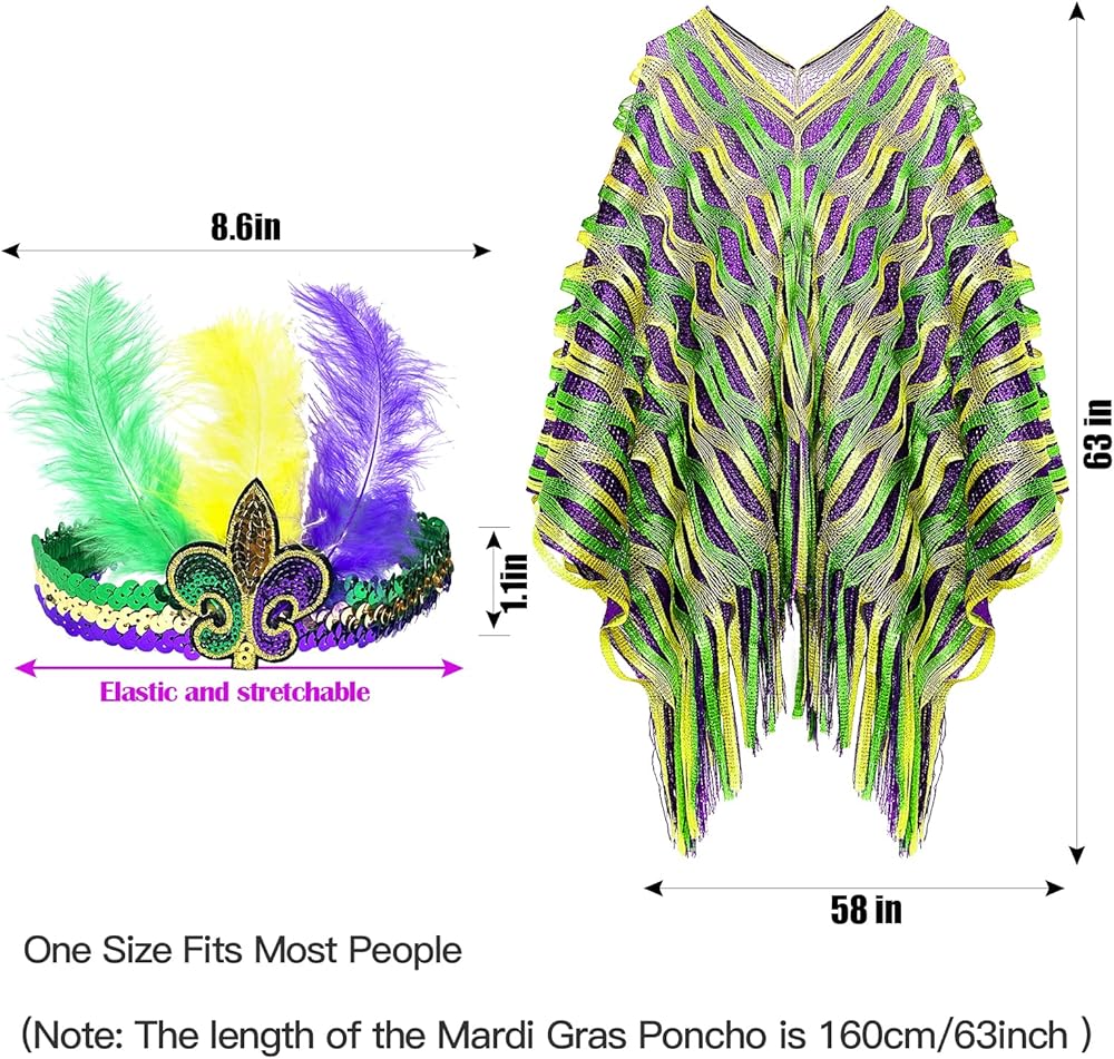 【مقاس واحد يناسب معظم الأشخاص】شال Mardi Gra الخاص بنا حوالي 41x21 بوصة، مقاس الشرابة على كلا الجانبين يبلغ طوله 7.8 بوصة. بالإضافة إلى ذلك، يبلغ مقاس عصابة الرأس من ريش الكرنفال 7.8x5.9 بوصة. وعصابة الرأس مرنة، ومناسبة لمعظم محيطات رأس النساء، وسوف تسبب أي إزعاج.