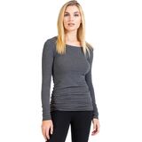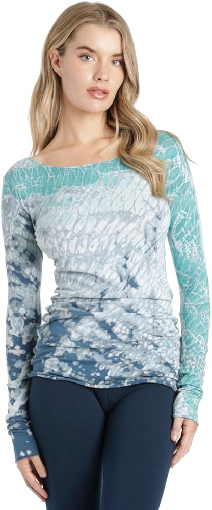 Stretch fit with raw edge trim ★ High scoop neck ★ Extra-long sleeves ★ Hits below hip