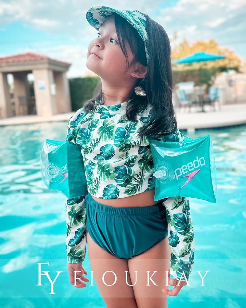 • يشتمل على: بدلة السباحة هذه للفتيات تتضمن قمصان سباحة طويلة الأكمام ورقبة دائرية مع ربطة عنق عملية في الخلف + ملابس سباحة مكشكشة مع قبعة.