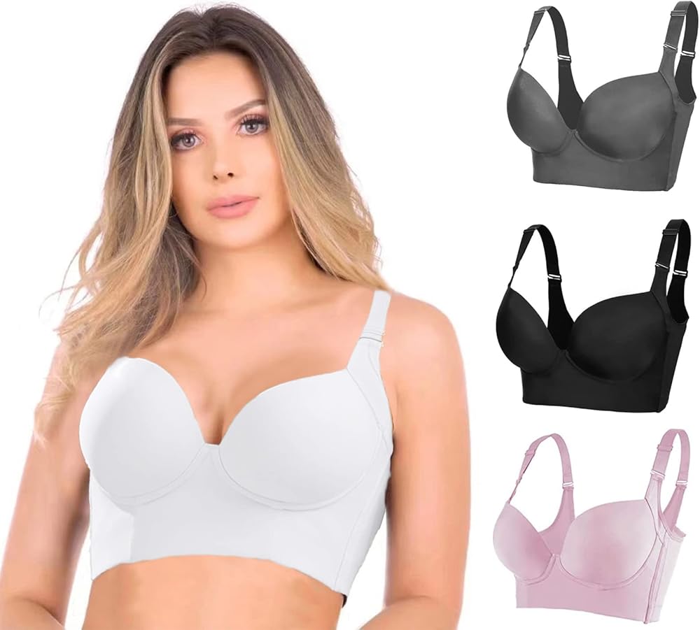 تصميم مثالي: حمالة صدر عميقة بظهر كامل لإخفاء دهون الظهر والجانب، وتساعدك على تصحيح وضعك وتشكيل الجزء العلوي من جسمك. توفر البطانة ذات التصميم الغاطس دعمًا رائعًا ومظهرًا مثيرًا للصدر، مما يجعلها جذابة للنساء ذات الحجم الصغير والكبير.