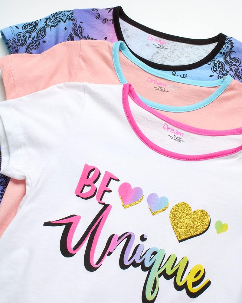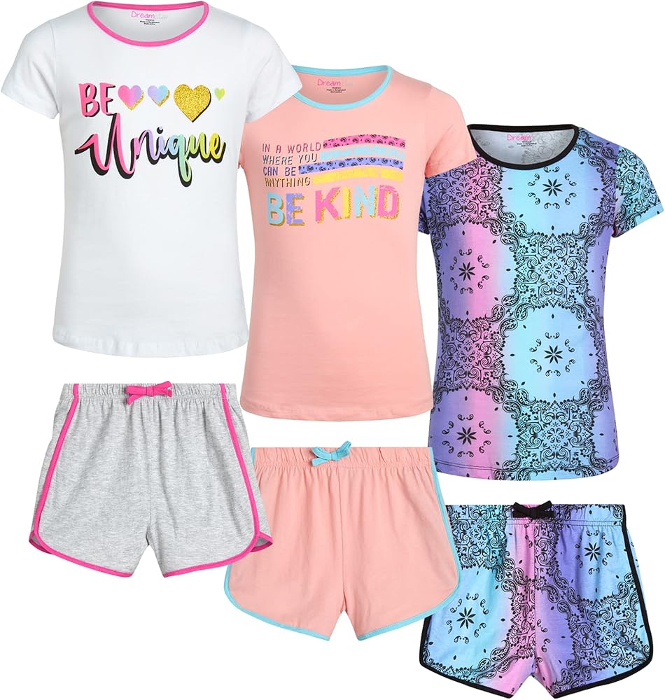 • GREAT VALUE: Get a 6-piece set featuring three stylish performance short-sleeve t-shirts and three pairs of soft and breathable summer shorts and expand your girl's wardrobe; This classic Dreamstar shorts set makes a great birthday present; Perfect gift idea for your daughter, granddaughter, sister, niece, and friends