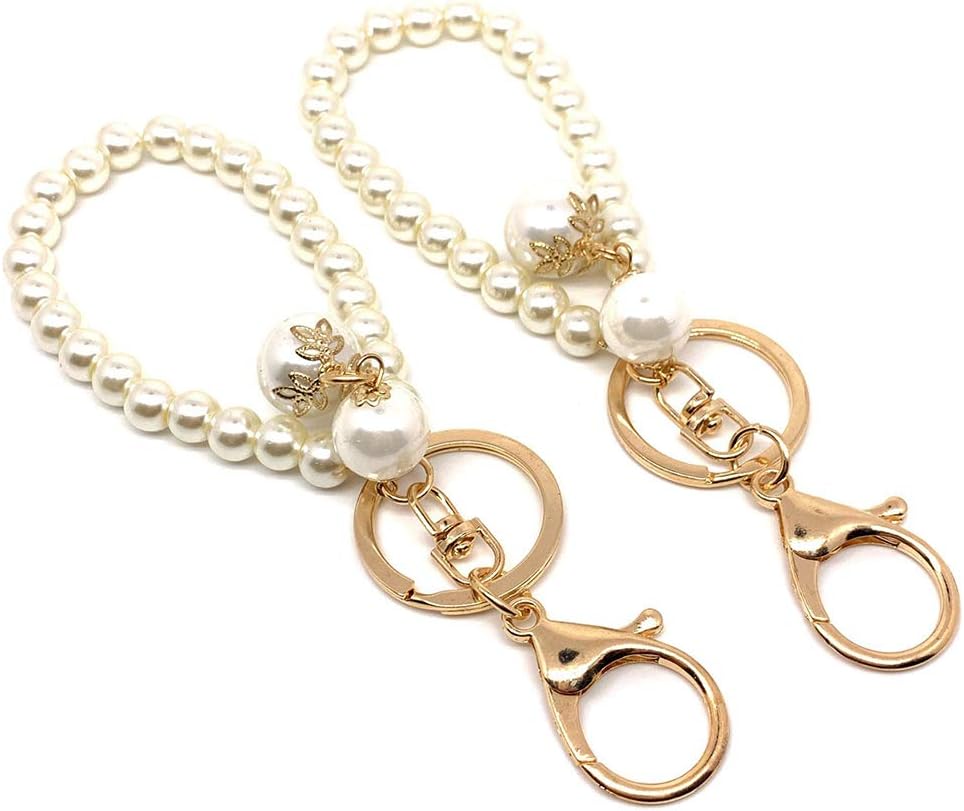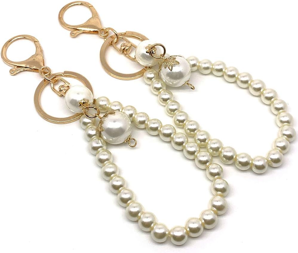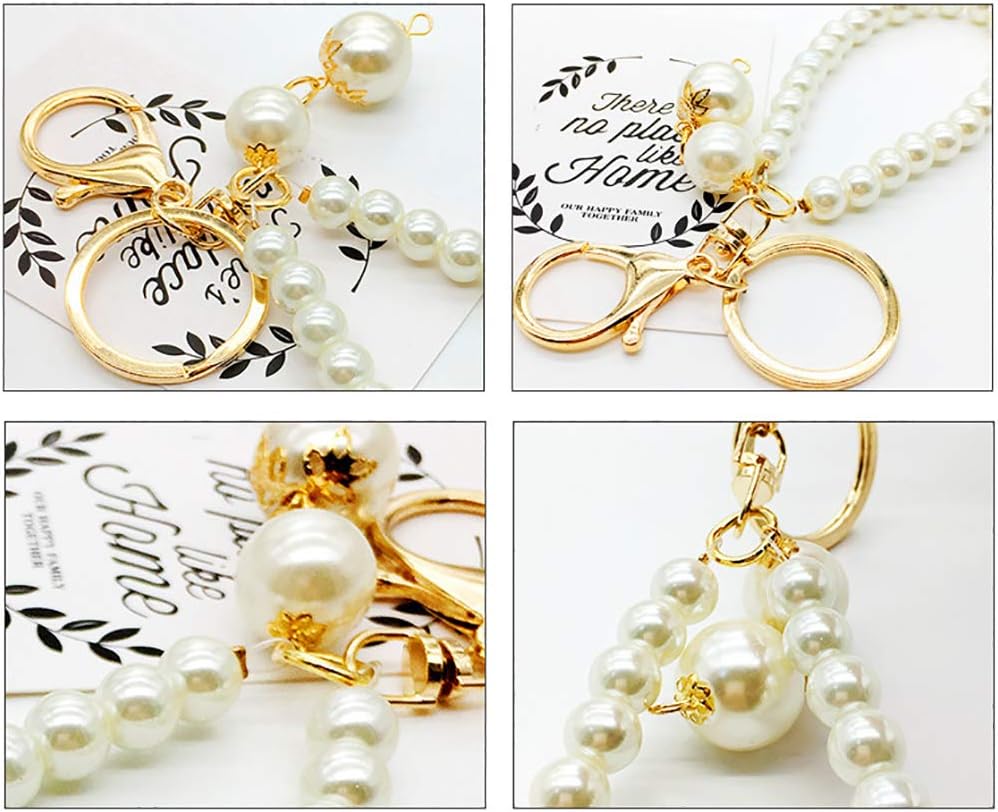 UUYYEO 4 قطعة سلسلة مفاتيح من اللؤلؤ الصناعي كيرينغ اليد المعصم الحبل السوار حزام سوار سحر لمحفظة المفاتيح