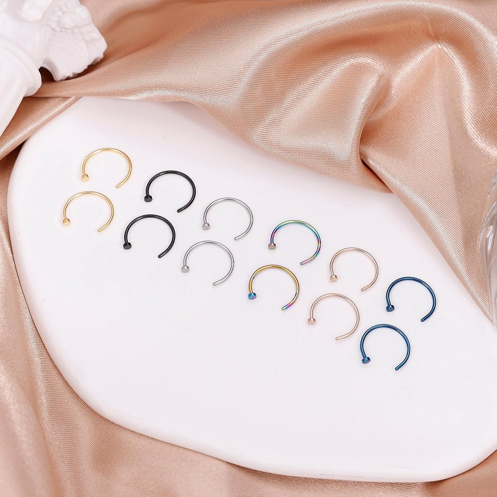 💖مجموعة حلقات الأنف: يأتي طلب واحد مع 48 قطعة من حلقات الأنف بـ 12 لونًا مختلفًا، بما في ذلك 24 قطعة من حلقات نصف الأنف، و24 قطعة من حلقات الأنف بدون خياطة. يمكن للألوان المتعددة حل صعوبات الاختيار الخاصة بك، ومطابقة الملابس والمظهر المختلف.