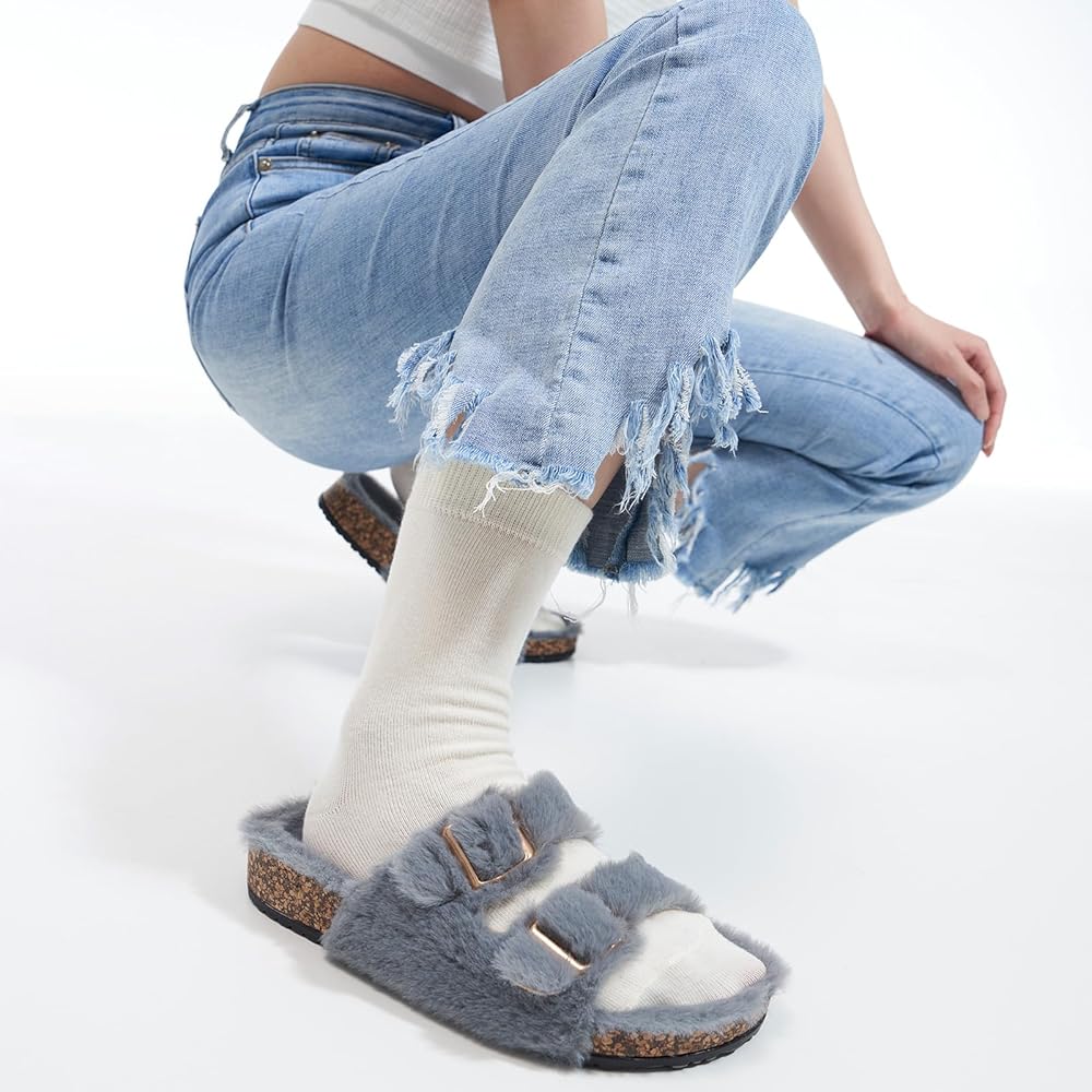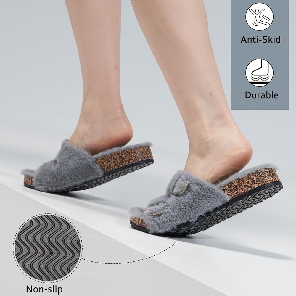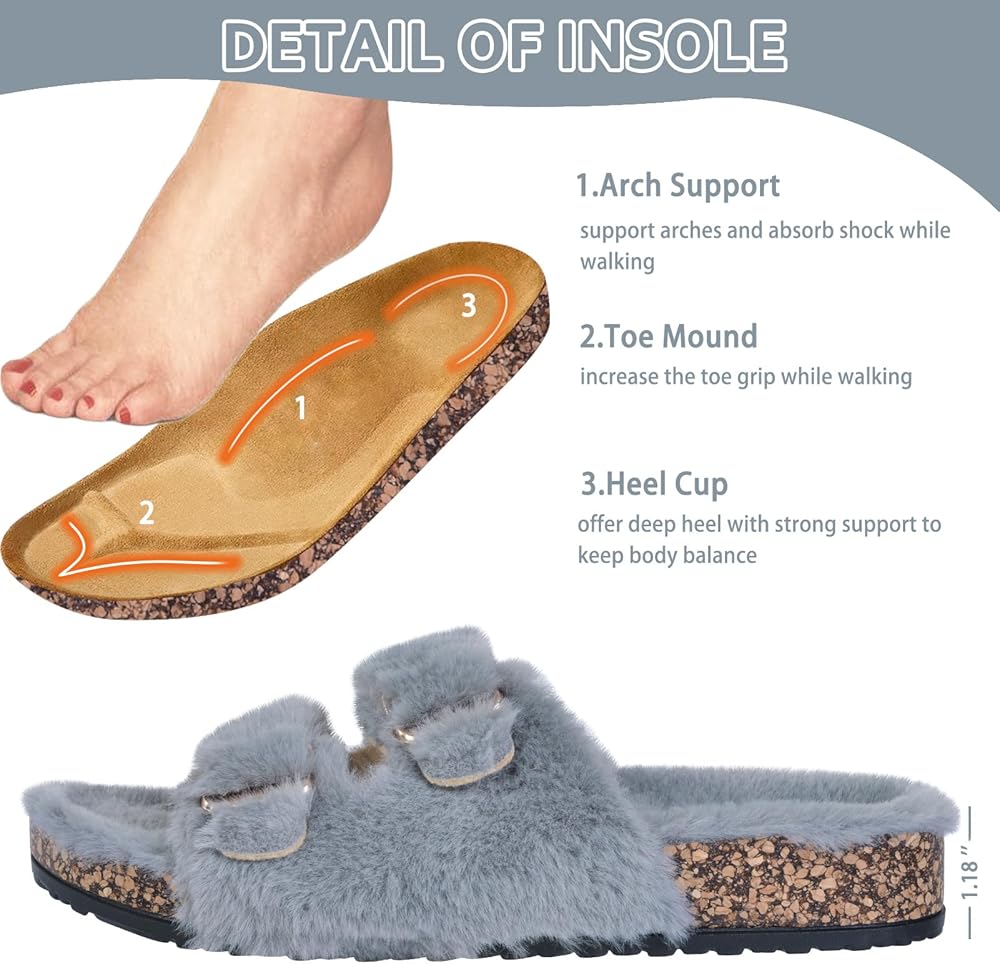 دعم القوس: تم تصميم النعال النسائية ذات الفراء بخبرة مع نظام دعم القوس الذي يوفر راحة وثباتًا معززين. قل وداعًا لتعب القدم واستمتع بالراحة طوال اليوم.