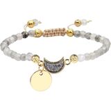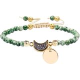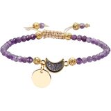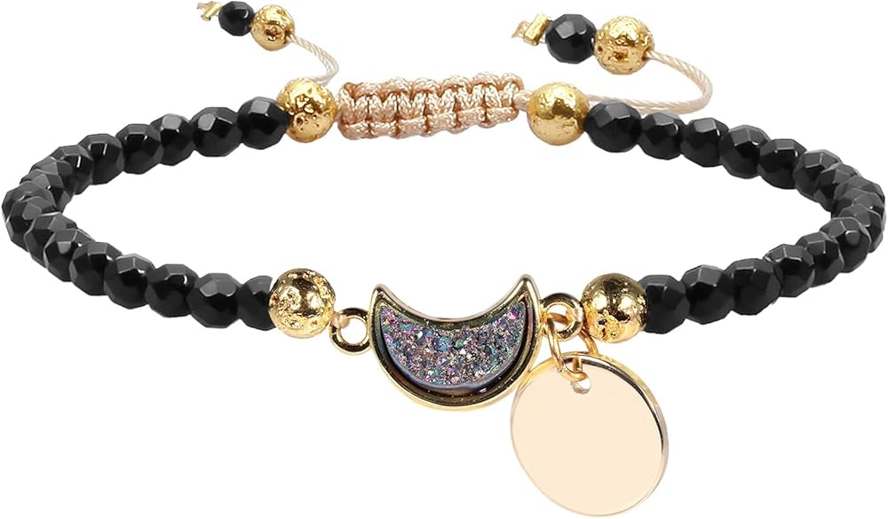 سوار حبلا مصنوع يدويًا: هذا السوار مصنوع من حجر الجمشت والكريستال الدروز المطلي بالتيتانيوم وسبائك وحبل من النايلون. الخرز الكريستالي ذو جوانب جميلة ولكنه مصقول بسلاسة، وقد تم تصميم جيود دروزي على شكل نصف قمر كديكور، مما يجعل السوار أكثر جمالاً وراحة في الارتداء. يحتوي كل سوار على عقدة منزلقة في المنتصف، يمكنك من خلالها ضبط السوار بسهولة على الحجم الذي تريده.