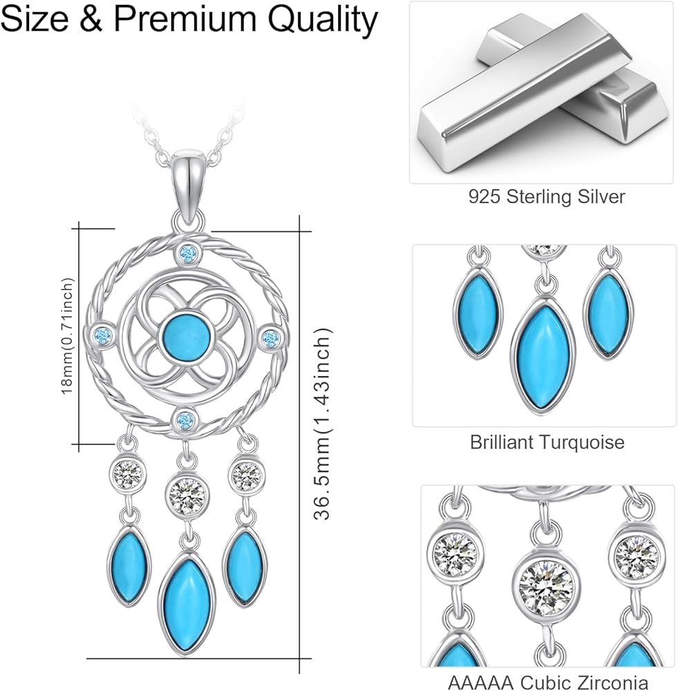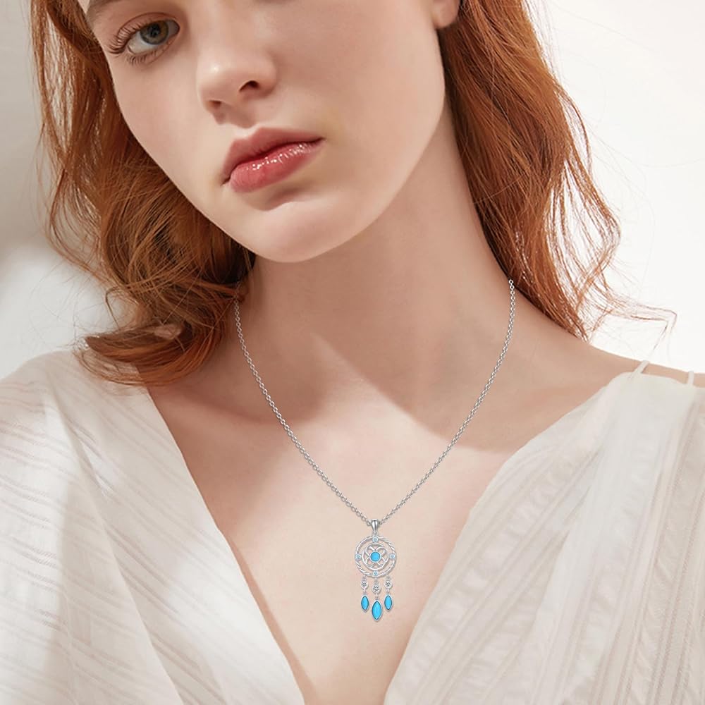 ❥Special Details: The center of the dream catcher pendant is entwined with a celtic knot, combined with blue zircon and natural turquoise, making the whole pendant stylish and distinctive
