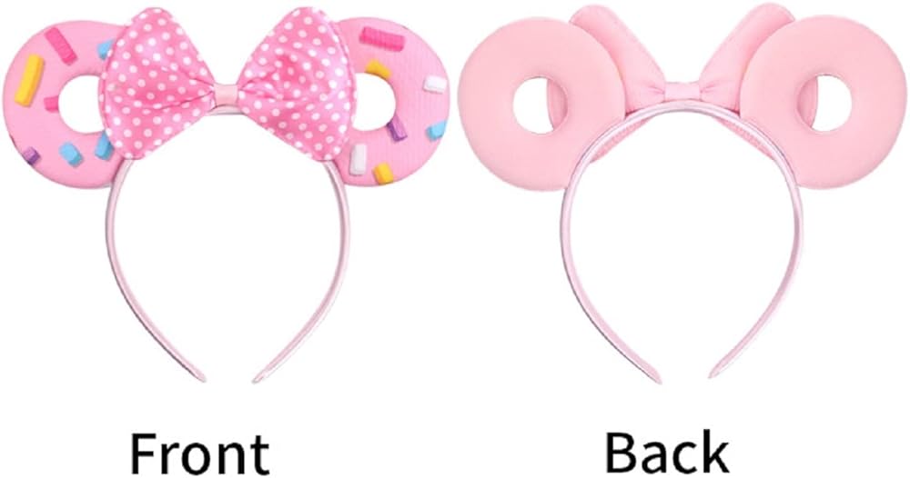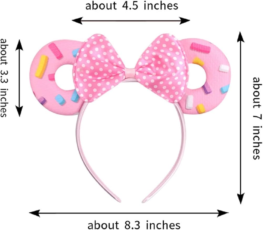 LSHDXD عصابة رأس على شكل فيونكة على شكل أذن الفأر لعيد الميلاد والهالوين وحفلات ديزني، عصابة رأس على شكل دونات بالترتر اللامع وإكسسوارات شعر لأذن القطط