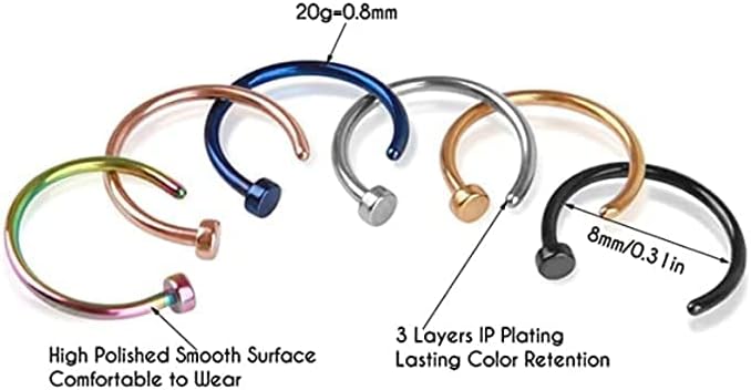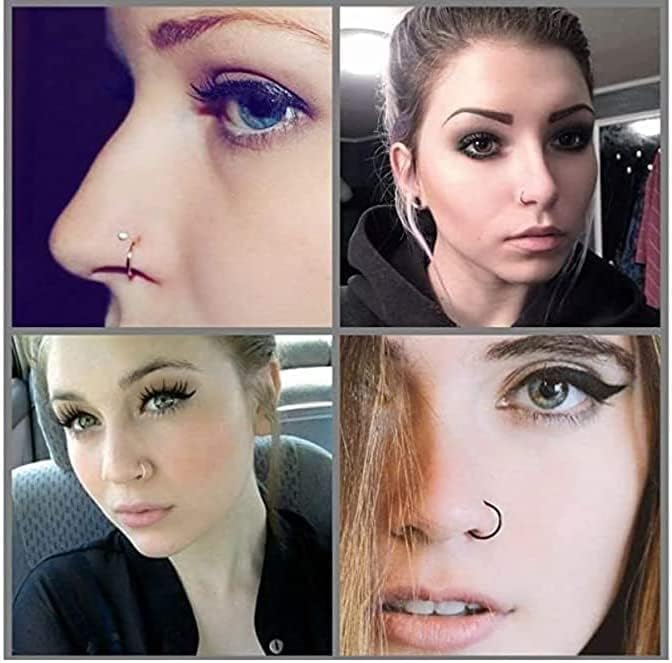 تتضمن العبوة 6/9/12 قطعة من حلقات الأنف (فضي + ذهبي + ذهبي وردي أسود + متعدد الألوان + أزرق)