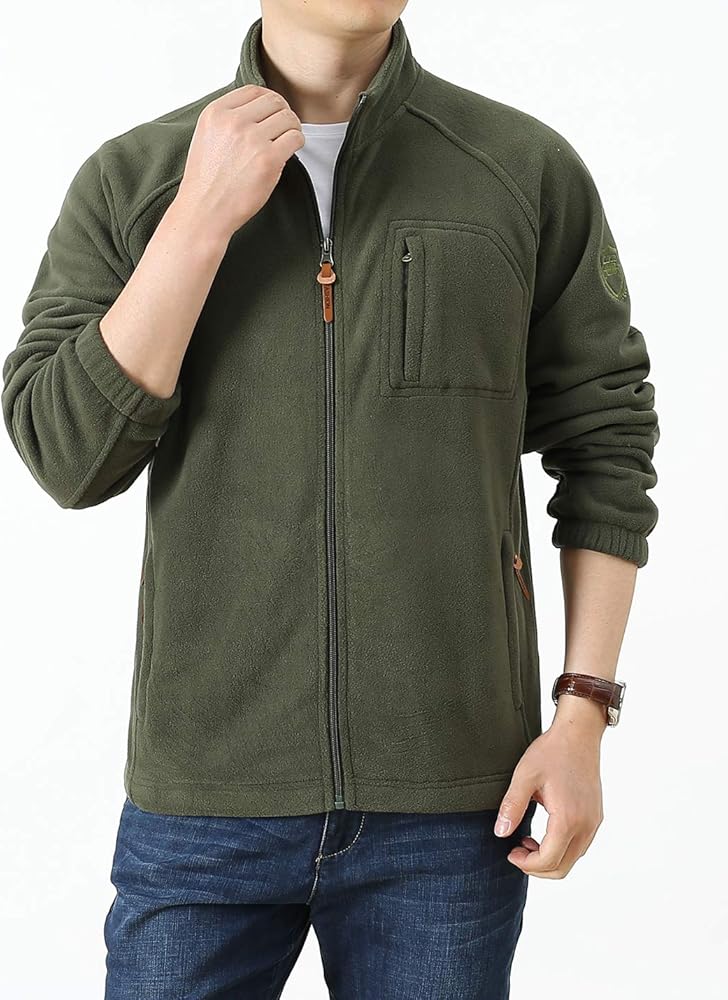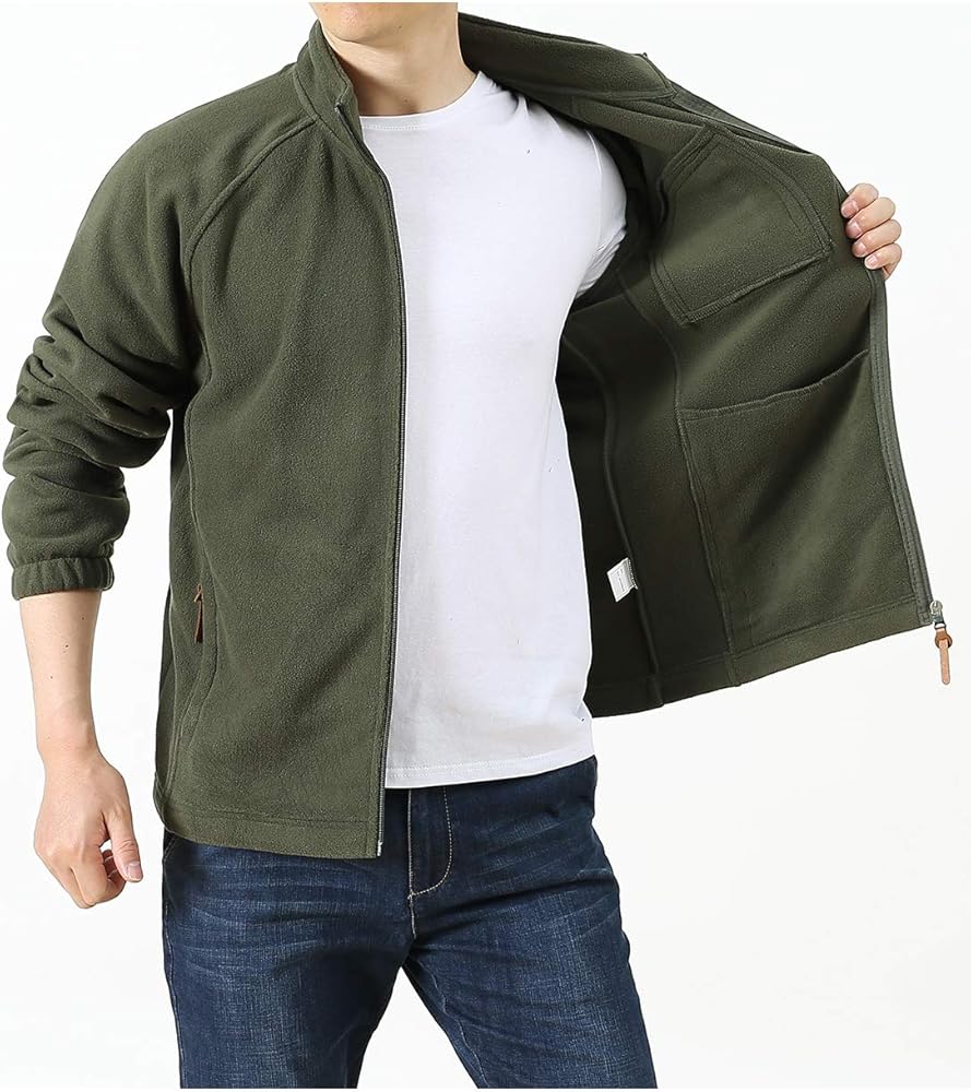 سترة صوفية للرجال من Locachy بسحاب كامل مقاومة للرياح وخفيفة الوزن للاستخدام الخارجي مع جيوب للتنزه سيرًا على الأقدام وملابس خارجية