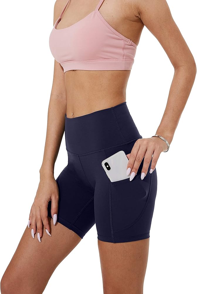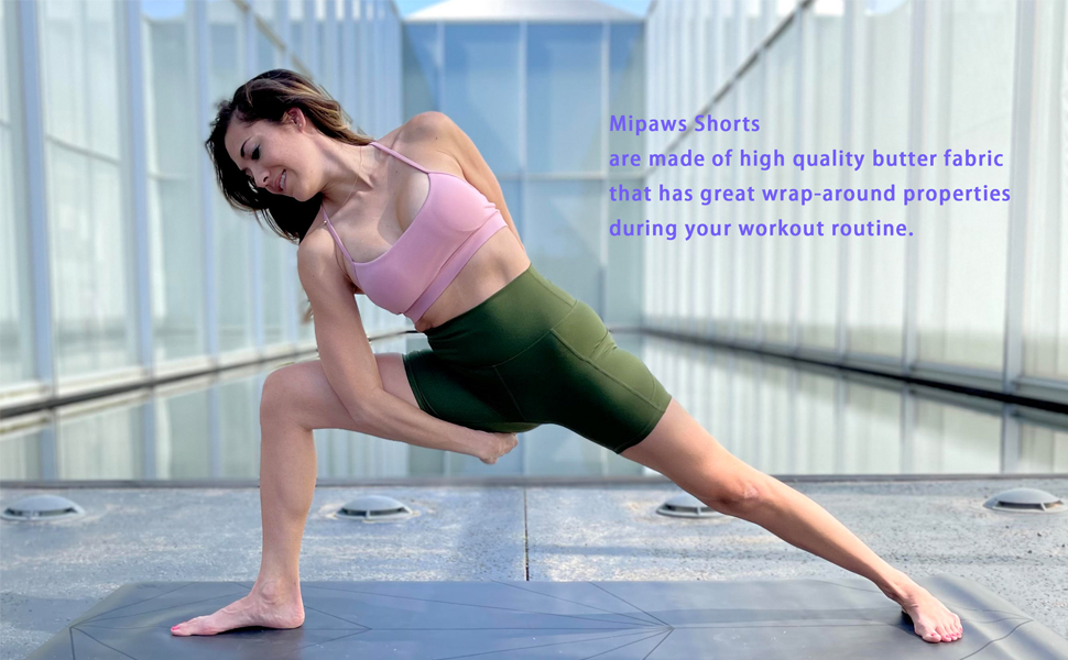 شورت يوجا نسائي عالي الخصر للتحكم في البطن من Mipaws مع جيوب درزة داخلية 6 بوصات