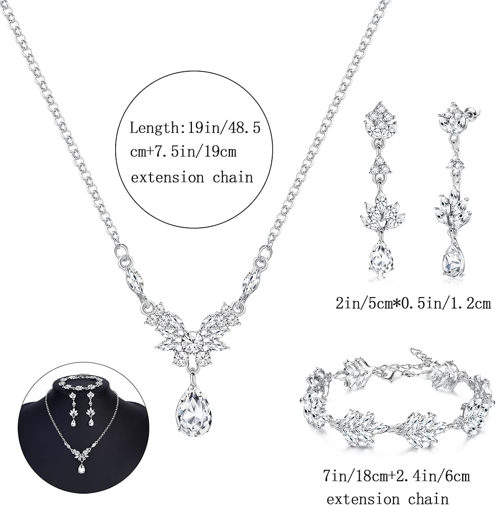 【حجم مجوهرات الحفلة الراقصة قابل للتعديل】طول قلادة الزفاف: 19 بوصة + 7.5 بوصة سلسلة خلفية، طول سوار حجر الراين للحفلات الراقصة: 7 بوصة + 2.4 بوصة سلسلة تمديد، طول قرط الزفاف: 2 بوصة، تصميم قابل للتعديل يناسب معظم النساء، مشبك جراد البحر سهل الارتداء وخلع، ليس من السهل كسر.