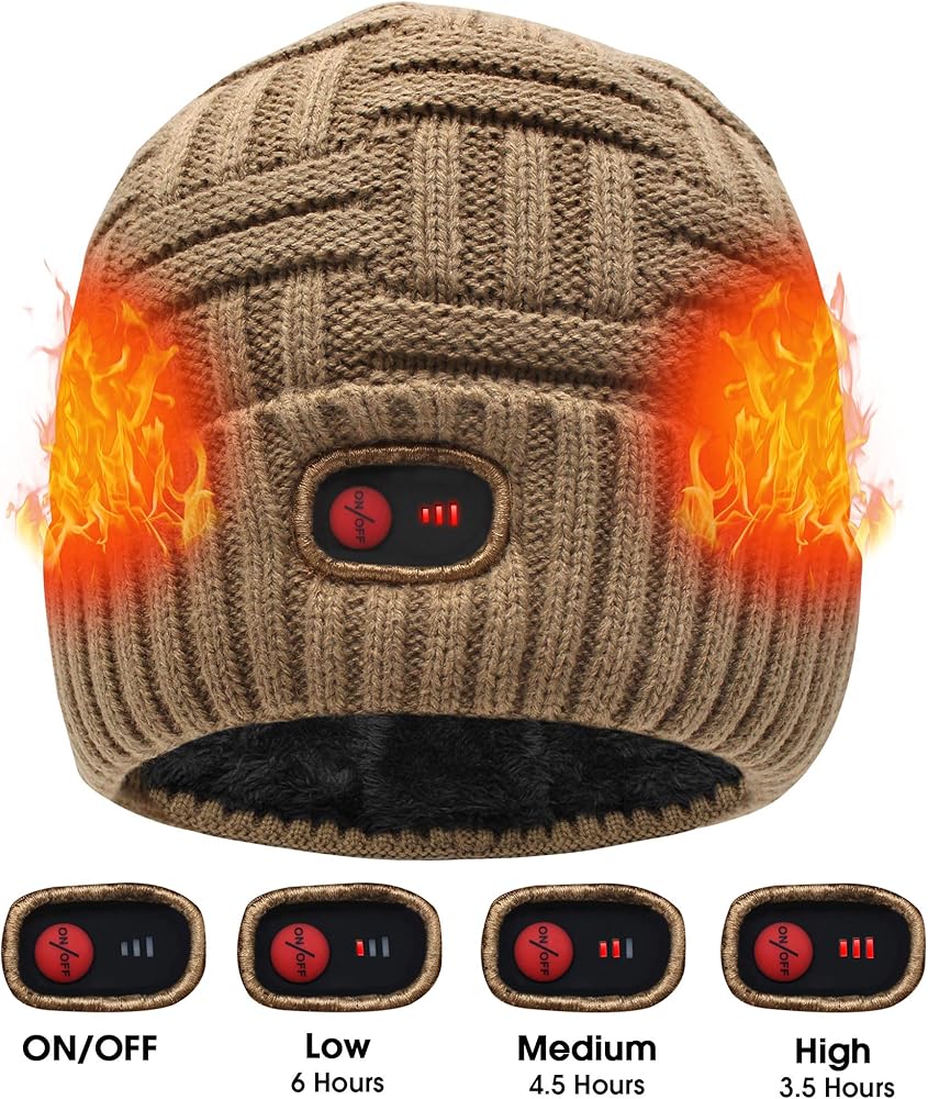 • COZY STYLISH BEANIES-The heated hat is for unisex adults(Perimeter:22inchone size fits most)classic knitting beanie cap to keep your head warm covering up the ears